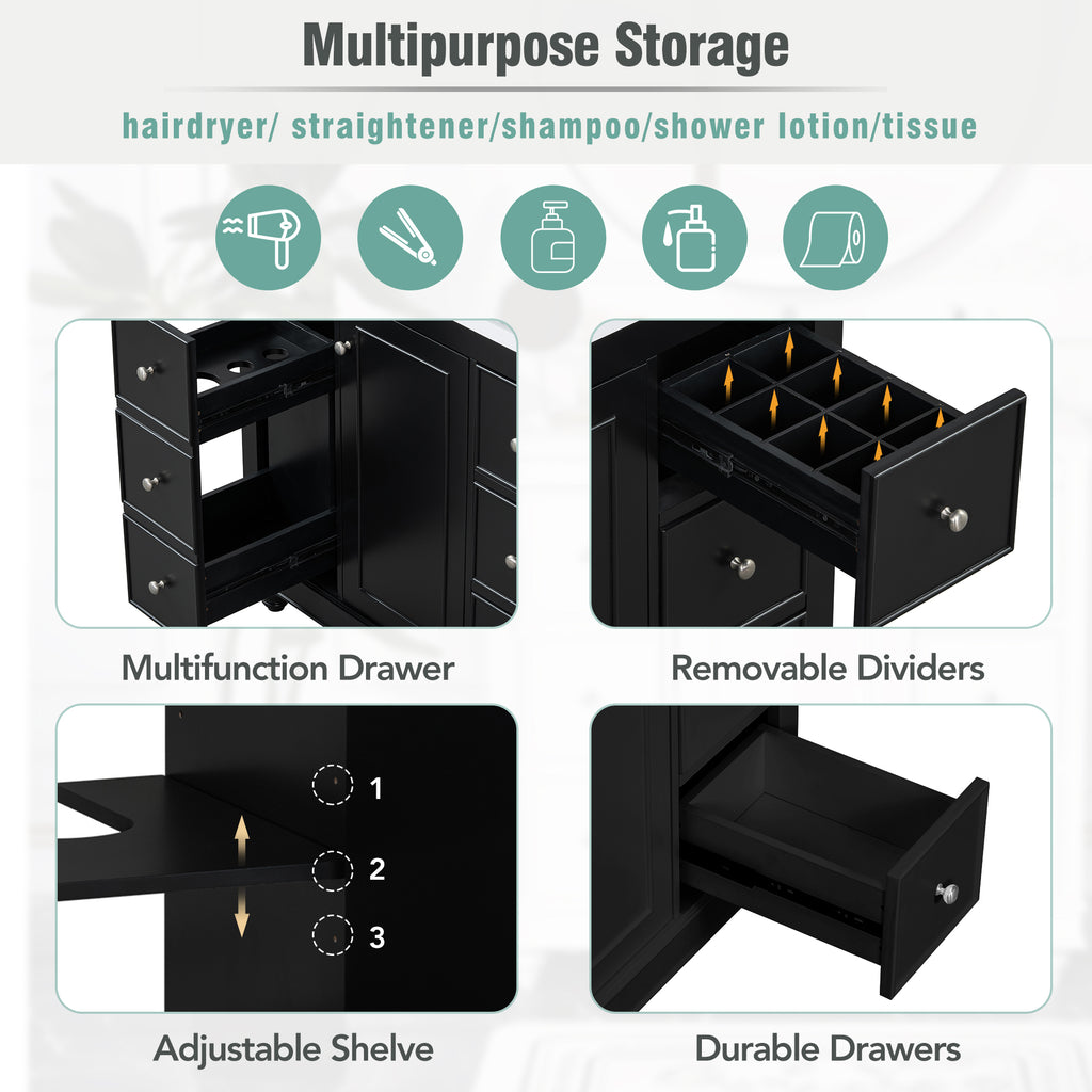 - Multipurpose Storage: The cabinet offers versatile storage options, including dedicated space for your hairdryer, straightener, and other grooming tools.