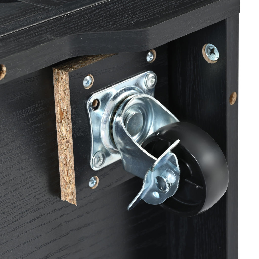 This mobile kitchen island on wheels is equipped with 5 universal wheels, 2 of which are lockable. The central placement of one wheel at the base ensures enhanced overall stability during movement.