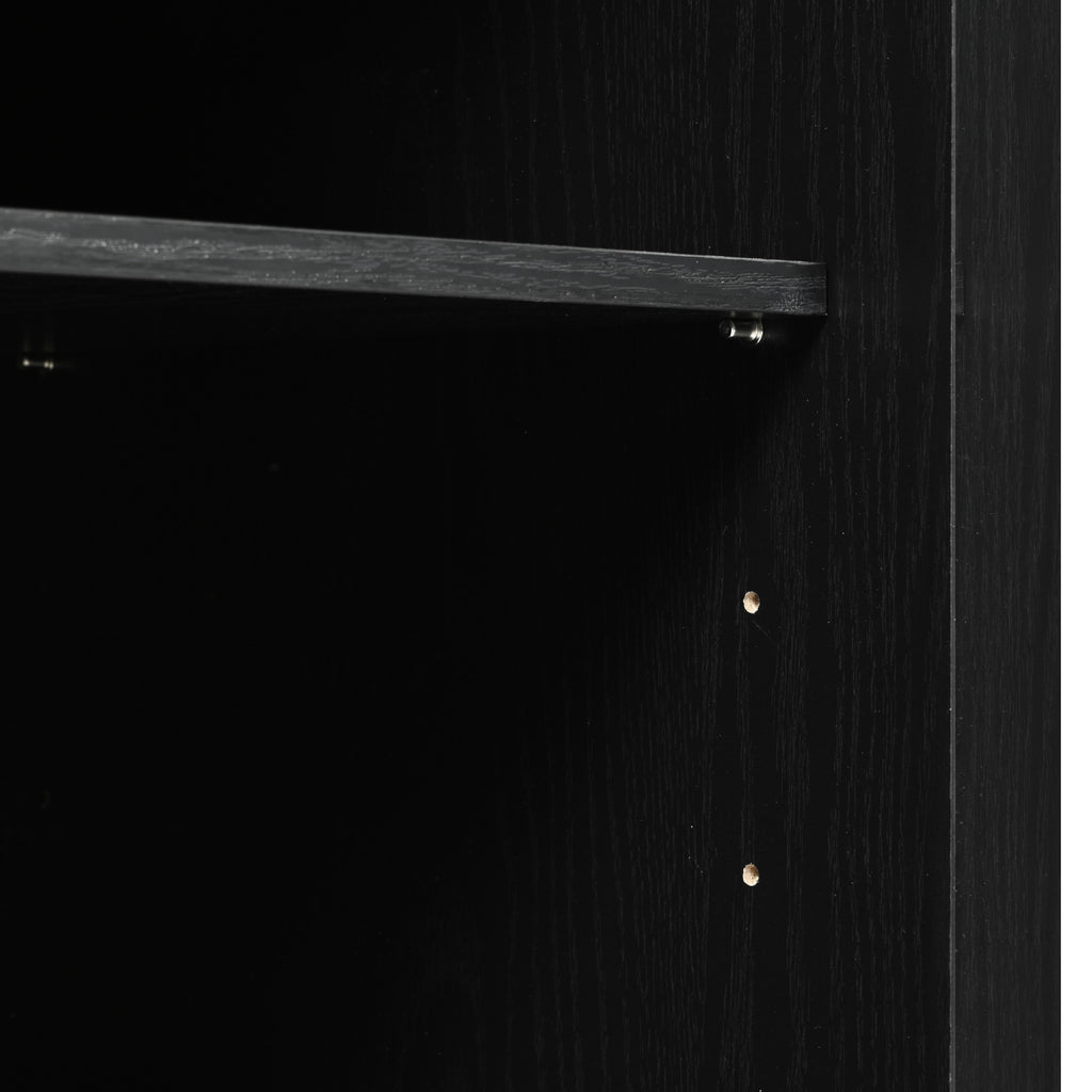 Its warm black wood grain cabinets, brown wood grain tabletops and lend a touch of farmhouse charm.