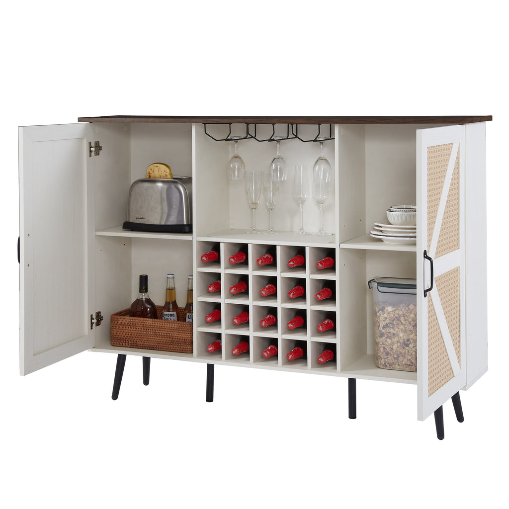 - PLENTY OF STORAGE SPACE:This freestanding dining side wine cooler comes with a spacious and sturdy tabletop, a 20-grid wine rack, wine glass holders, and two side cabinets with doors, each with adjustable tiers, providing you with plenty of open and hidden space for storing and displaying your wine, appliances, or personal items!