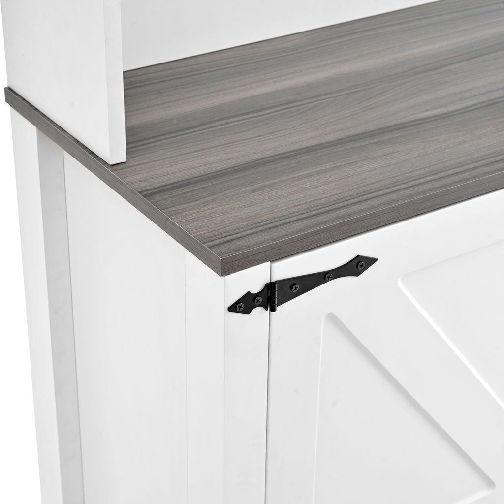Adorned with classic retro black handles, hinges and hooks, this hall tree exudes a rustic charm. The gracefully curved boards and two delicate barn doors further elevate the aesthetic of your hall tree, making it suitable to any farmhouse-inspired decor in your home.