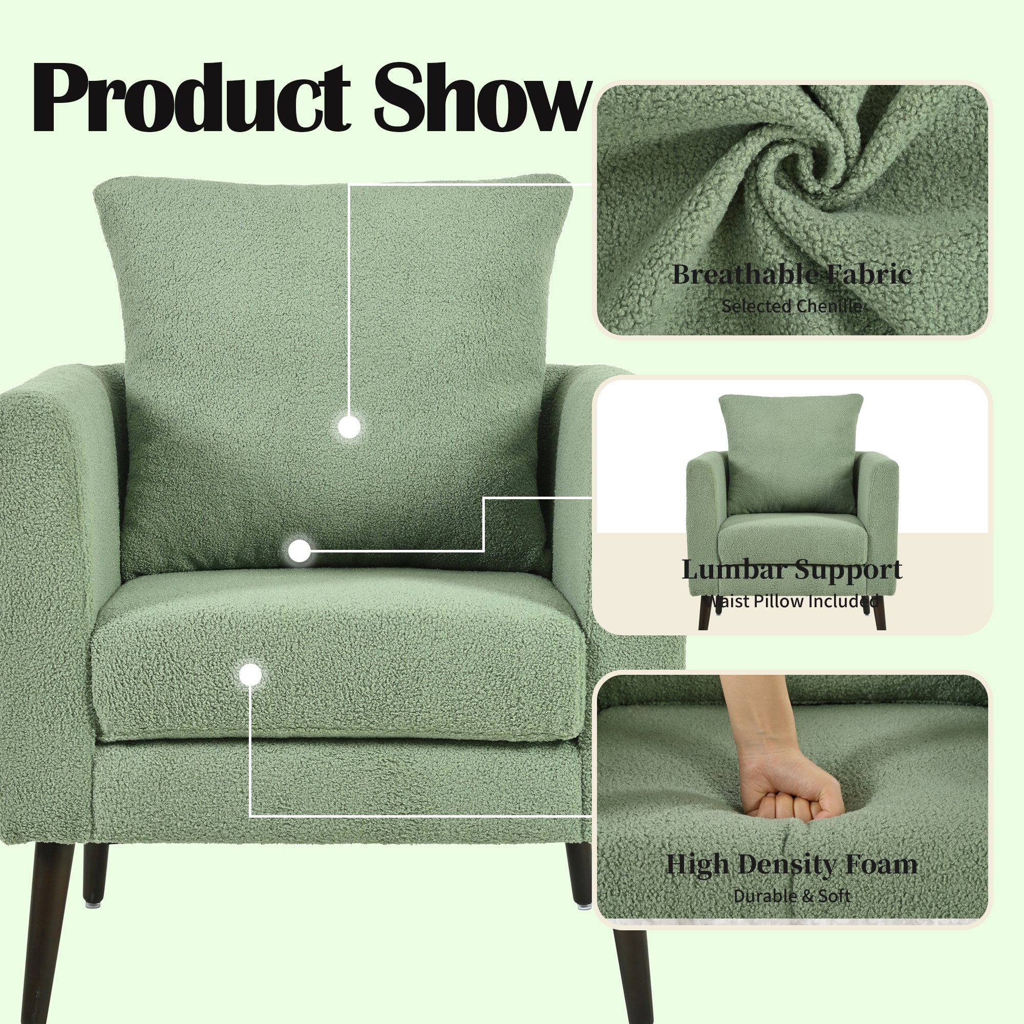 - 【Sturdy and Durable】This living room chair is supported by beautifully tapered wooden legs for an elegant look and durable construction. Due to the wood frame construction, the accent chair can withstand 275 pounds(static load capacity)which equals the weight of two adults, ensuring the sturdiness of our comfy chair.The fabric is not easy to pill and the cushion is not easy to deform with long-term use.