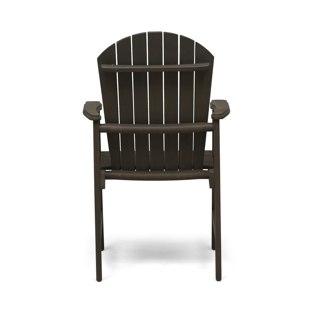 - Give your backyard or patio space a wonderful natural feel with our Adirondack dining chairs. Made from acacia wood, this chair set offers a naturally weather-resistant structure that also provides an attractive rustic look for your outdoor space. Showcasing slatted seating that is characteristic of Adirondack design, our chair set is the perfect addition to any dining set or lounge space. With easy maintenance and polished style, our chairs offer an instant upgrade that will last you for years
