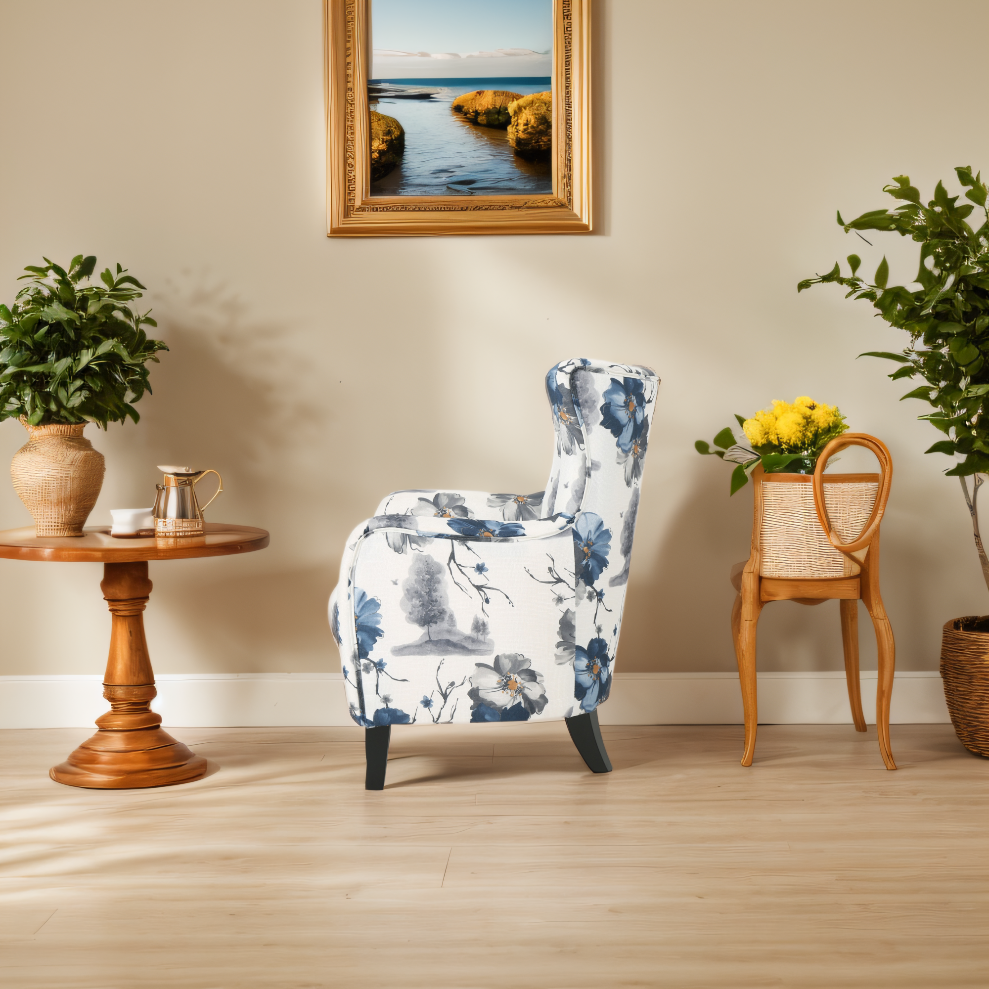 - Comfortable Seating: Sink into luxurious comfort with our Armchair. The soft fabric upholstery and plush cushioning provide a cozy and inviting seat, perfect for relaxing with a book, enjoying a cup of tea, or unwinding after a long day.