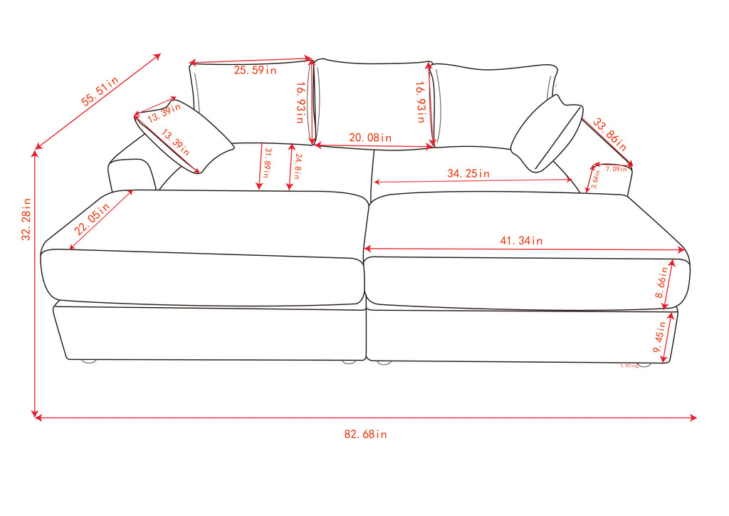 - Unrivalled comfort: enjoy the ultimate in comfort with this combination sofa. The ergonomic seat design and double-layered seat cushions provide cloud-like comfort. In addition, thick removable armrests and soft throw pillows provide extra support and comfort.