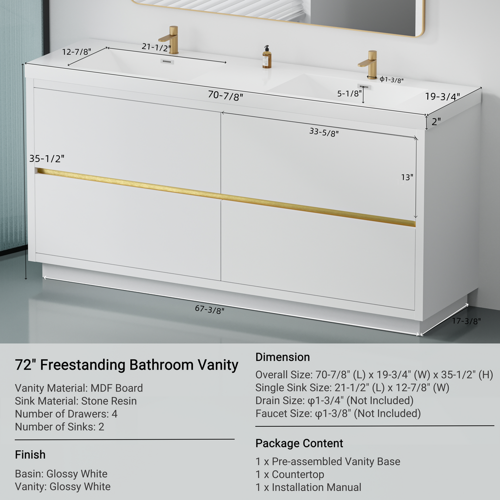 - Pre-Assembled for Convenience: Our vanity base is pre-assembled, ensuring a hassle-free installation experience and saving you valuable time.
