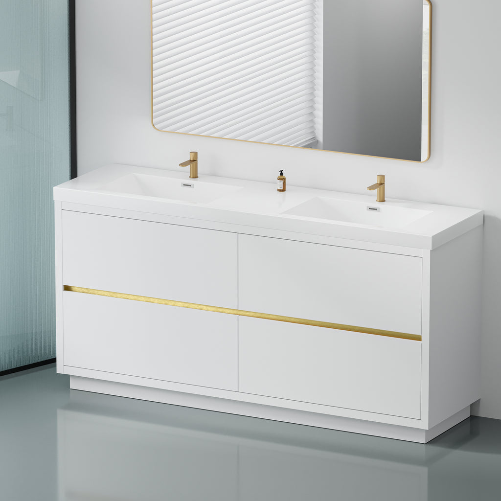 - Premium Stone Resin Countertop: It features a glossy white, one-piece sink made of high-quality materials that are easy to clean, resist yellowing, and have low water absorption.