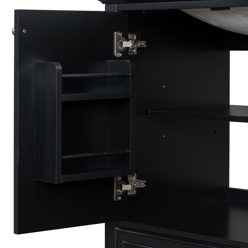 - Assembly Required: This bathroom vanity needs assembly. All the hardware(screws, metal door hinges and handles, drawer slides, anti-toppling device etc.) and instruction manual are provided. You can install it according to the instruction easily.