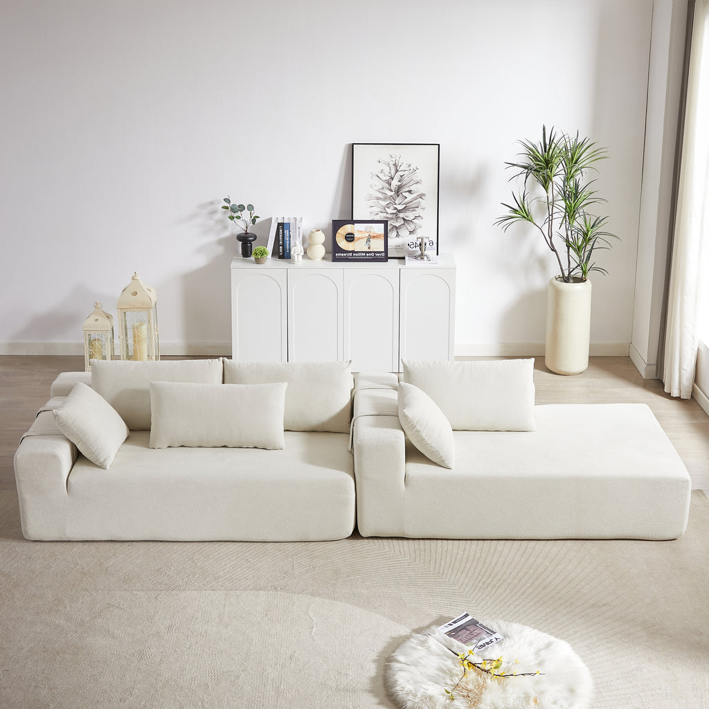 - [Comfortable Sofa Couch]This Upholstered sectional sofa couch is designed with straight cut edges and elegant and welcoming look that's not only pretty to see but soft durable to live with, plus extra-wide seating, the luxury sofa set providing a place to enjoy watching movies or relaxing with your family or friends.The living room sofa set is made of soft Foam support that are both comfortable and durable.
