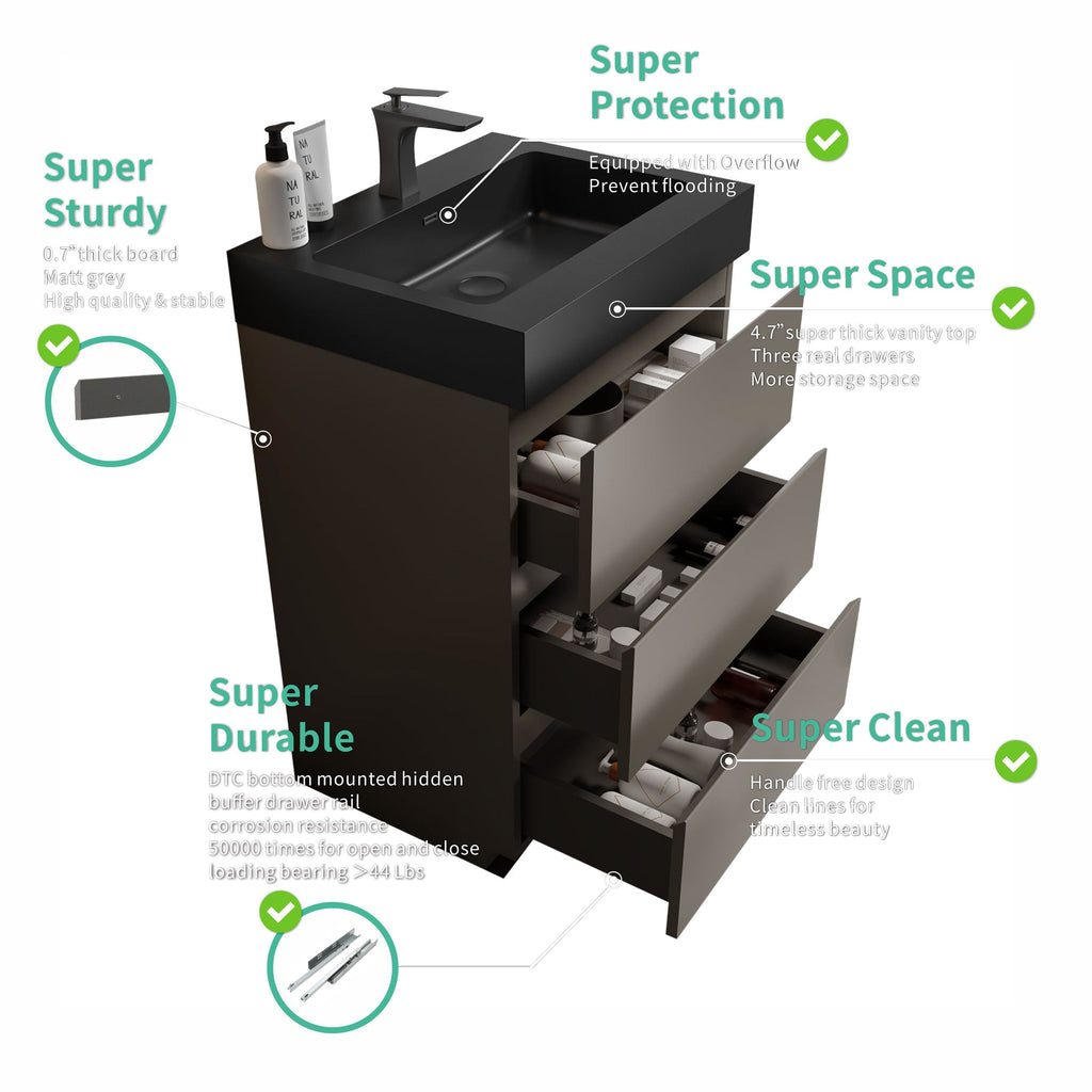But Alice is more than just a visually stunning piece - it's a storage powerhouse. With three thoughtfully designed drawers, this freestanding vanity maximizes your storage capacity by an impressive 20%. Say goodbye to cluttered countertops and hello to a perfectly organized sanctuary.
