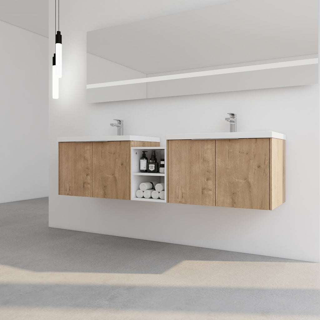 | Package includes | - 2x Vanity Cabinet; - 1x Small Storage Shelves;- 2x Resin Sink;- 4x Metal Handle; Parts Package |