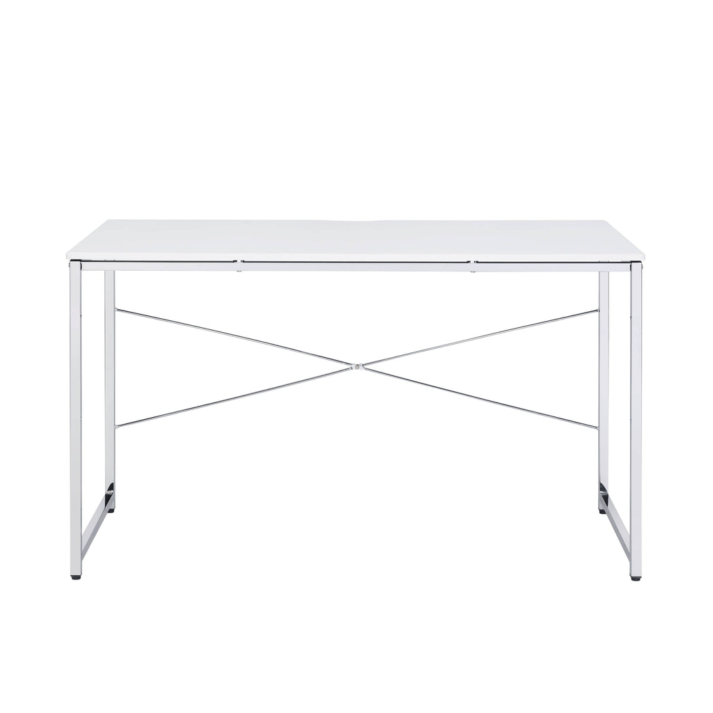 - Supported by a sturdy chrome metal frame, providing durability and stability while adding a stylish and modern touch to the desk's design