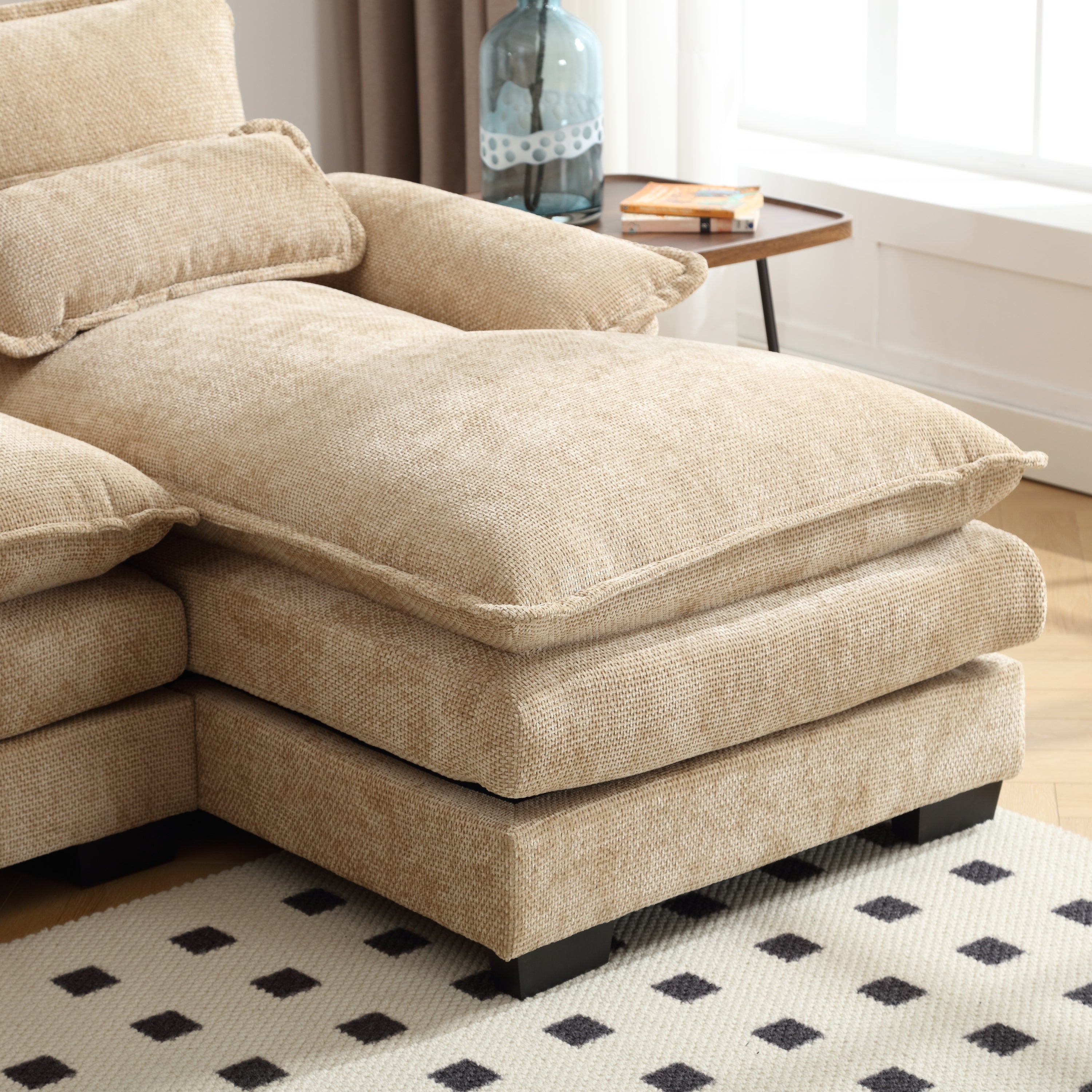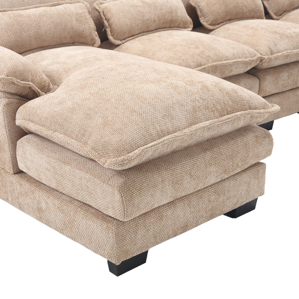 Sturdy solid wood frame, chenille fabric, filled with high-density sponge, making this modular sectional sofa beautiful and comfort, it can be perfectly matched with your apartment, house or conference room.Our modular sectional sofa is based on a solid hardwood frame with durable memory foam cushions built into the fabric, solid black legs perfectly support the entire sofa and can be used for long time