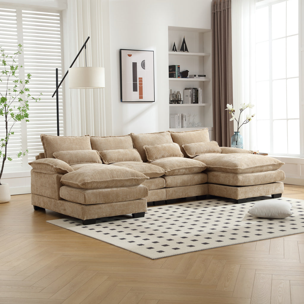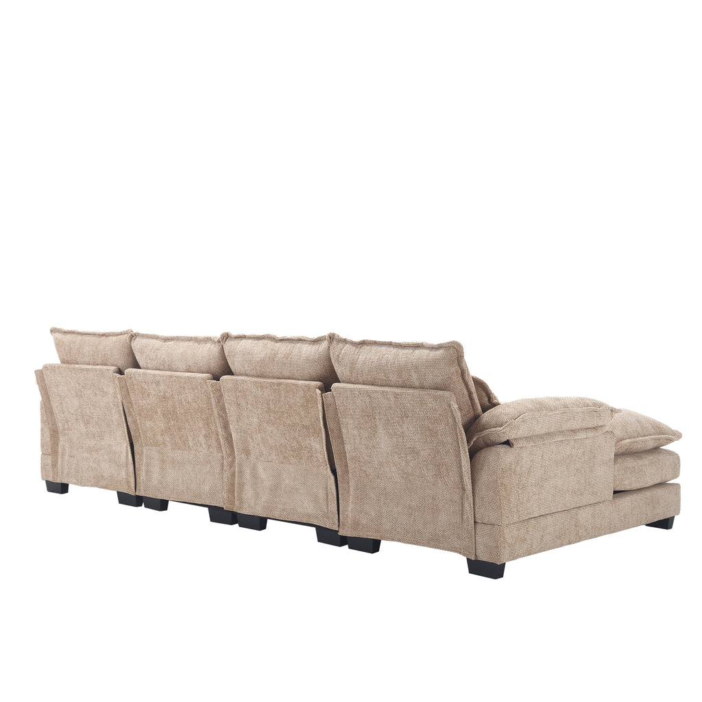 - The oversized four-seat design provides a spacious sitting and sleeping space for you and your family and friends. Whether it is a family gathering, a visit from friends, or a family fun, it can be easily accommodated. The spacious seating allows everyone to find a comfortable place to enjoy the happy hour. Moreover, the large size also makes the sofa the focus of the living room, highlighting the atmosphere and luxury.