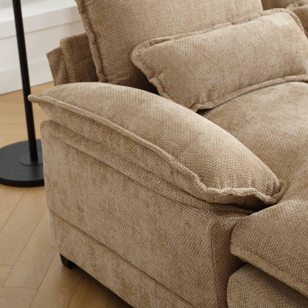 - Selected high-quality chenille fabric, feel silky smooth, skin friendly excellent. Its delicate texture and rich colors add elegance and fashion to the sofa. This fabric is not only beautiful, but also has good wear resistance and wrinkle resistance, even after a long time of use, it can still maintain a new appearance. At the same time, chenille fabric is easy to clean, and daily stains can be removed by gently wiping with a wet cloth, bringing more convenience to your home life.