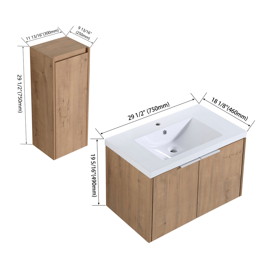 | Package includes: | - 1x Vanity Cabinet;- 1x Side Cabinet;- 1x Resin Sink; - 2x Metal Handle; Parts Package |