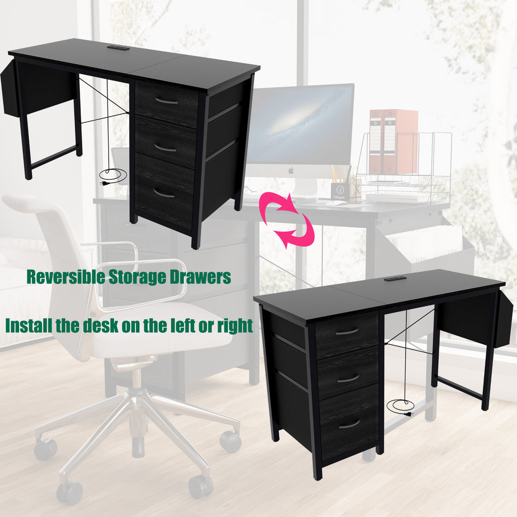 - [Adjustable and Reversible Computer Desk]: The cabinet with drawers and side pocket can be installed on the left or right side according to your preferences.
