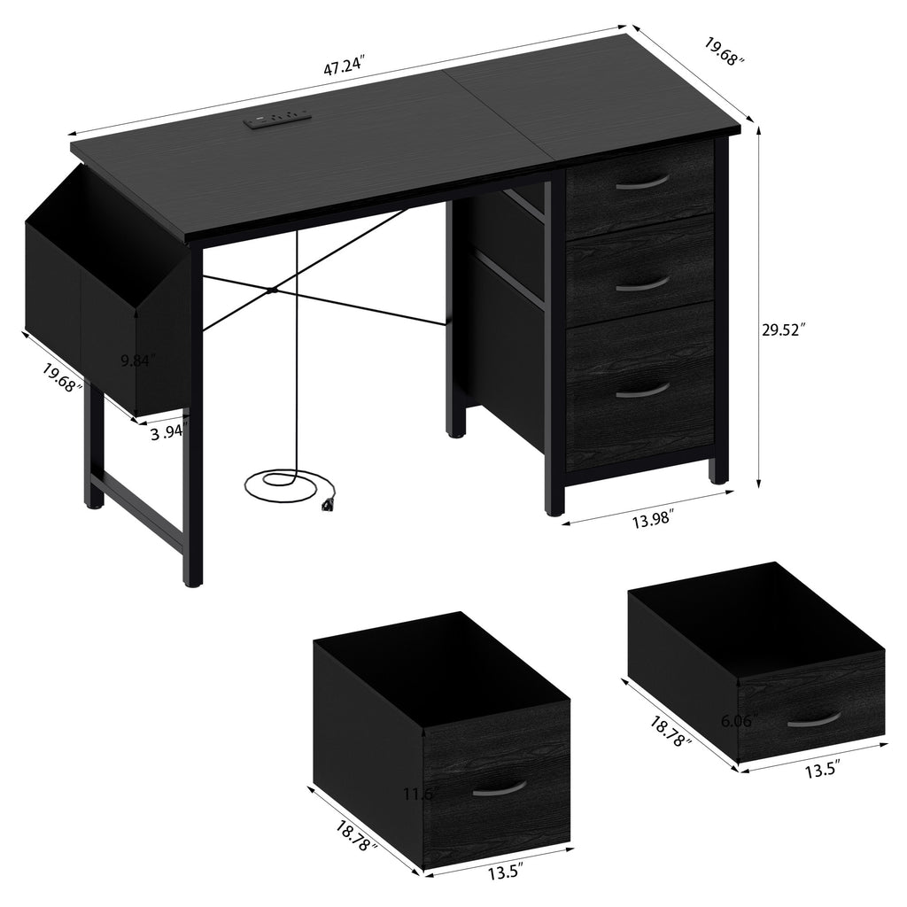 - [3 Fabric Drawers and Extra Large Side Pocket]: Featuring 3 foldable and easy-to-pull fabric drawers (the drawer base is made of 5mm board for sturdy load-bearing), it offers ample storage space for your daily needs. Perfectly organize and store your documents, stationery, books, cosmetics, and personal items. Drawer dimensions: 2pcs at 18.8'D * 13.5'W * 6.1'H, and 1pc at 18.8'D * 13.5'W * 12'H. Side pocket dimensions: 19'D * 12.2'W * 6.1'H.
