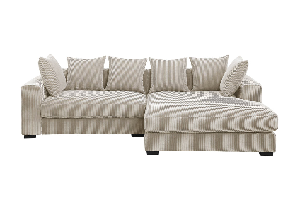 - Crafted to enhance your living space. The fabric is luxurious and textured corduroy, a perfect choice for both tactile pleasure and lasting durability. Designed with your relaxation in mind, this sectional features two generously padded armrests that invite you to sink in and unwind