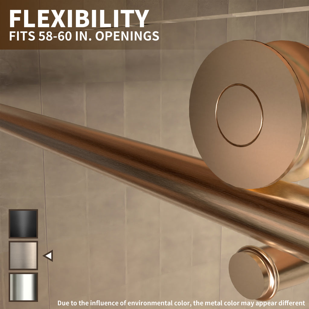 - Flexible width adjustment: 58 in. ~ 60 in. through cutting top bar and bottom track