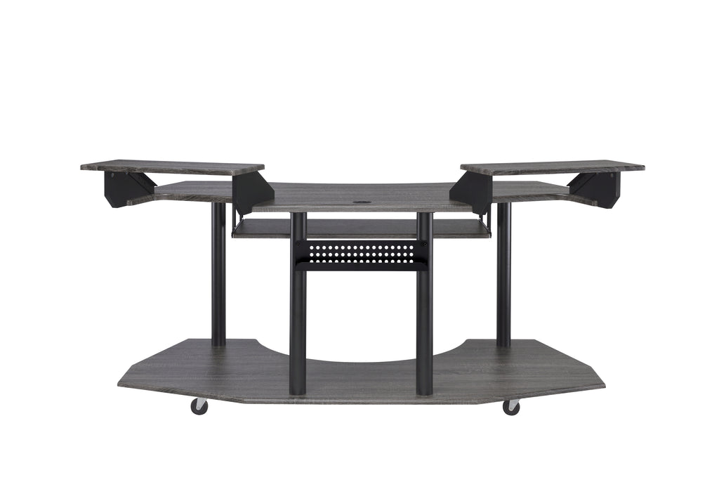 - Upgrade your music production space with this expansive 71' music studio desk, available in sleek black oak or natural oak finishes.