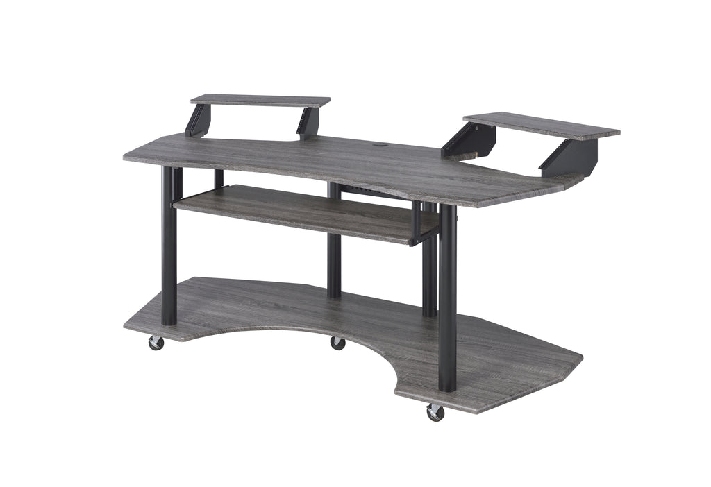 - This desk includes dedicated storage for a keyboard and two stands, ensuring your equipment is organized and easily accessible.