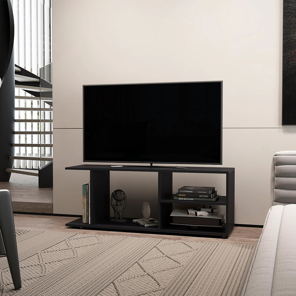 This modern media console provides generous space for all your multimedia devices and accessories, ensuring everything is neatly organized and easily accessible while maximizing your living area without taking up excessive space. With smooth surfaces that are simple to wipe down for easy maintenance, the sleek black finish adds a contemporary touch and serves as a versatile backdrop that complements any decor style, making it an ideal choice for enhancing your living space.