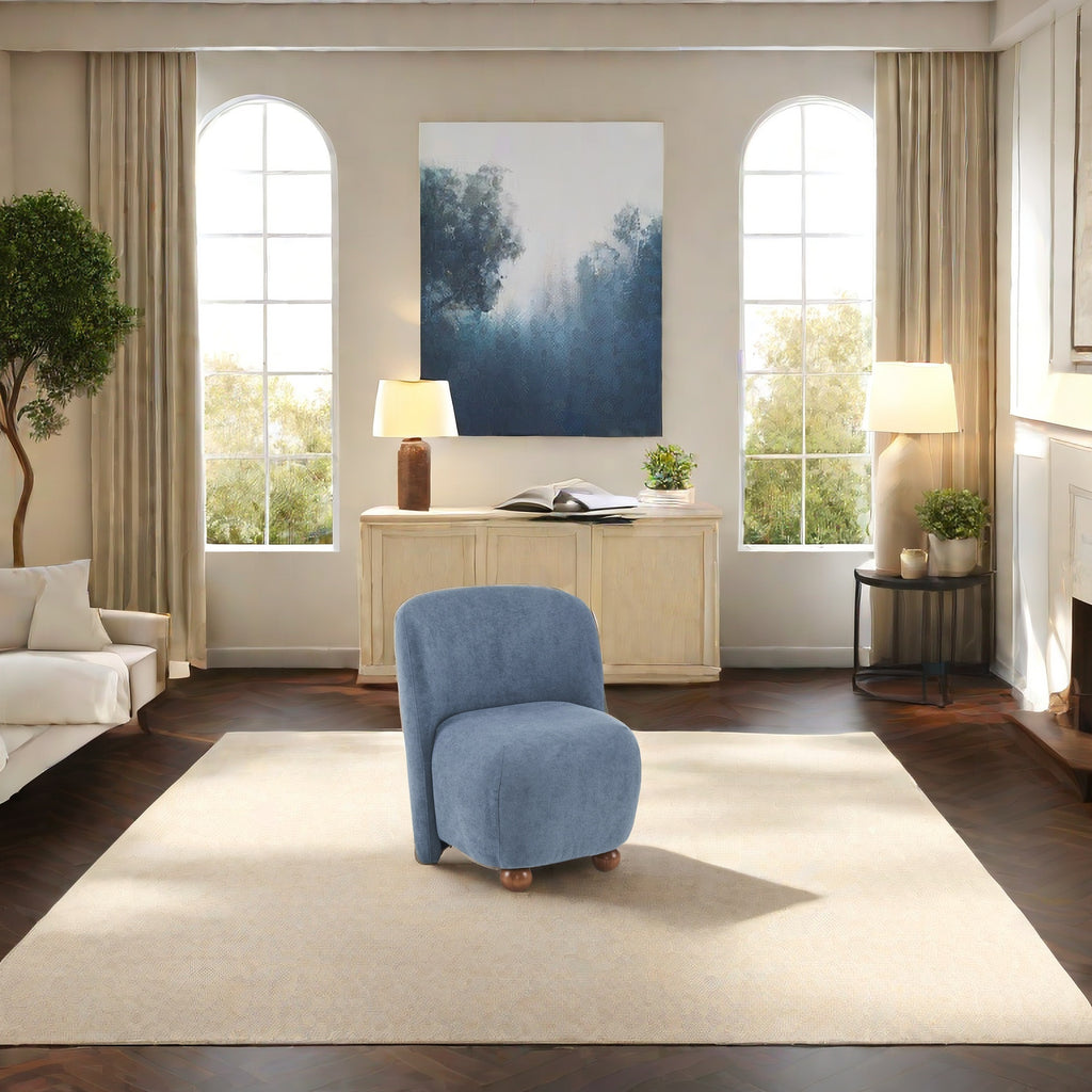 Besides, this armless chair with round pine wood legs is an ideal addition for those who value both functionality and design. Its thoughtful construction, combined with its comfortable seating, makes it a perfect fit for any room, whether as a standalone accent or as part of a larger seating arrangement. The combination of natural wood and sleek, armless design ensures it remains a timeless piece that can effortlessly transition through changing trends and preferences.