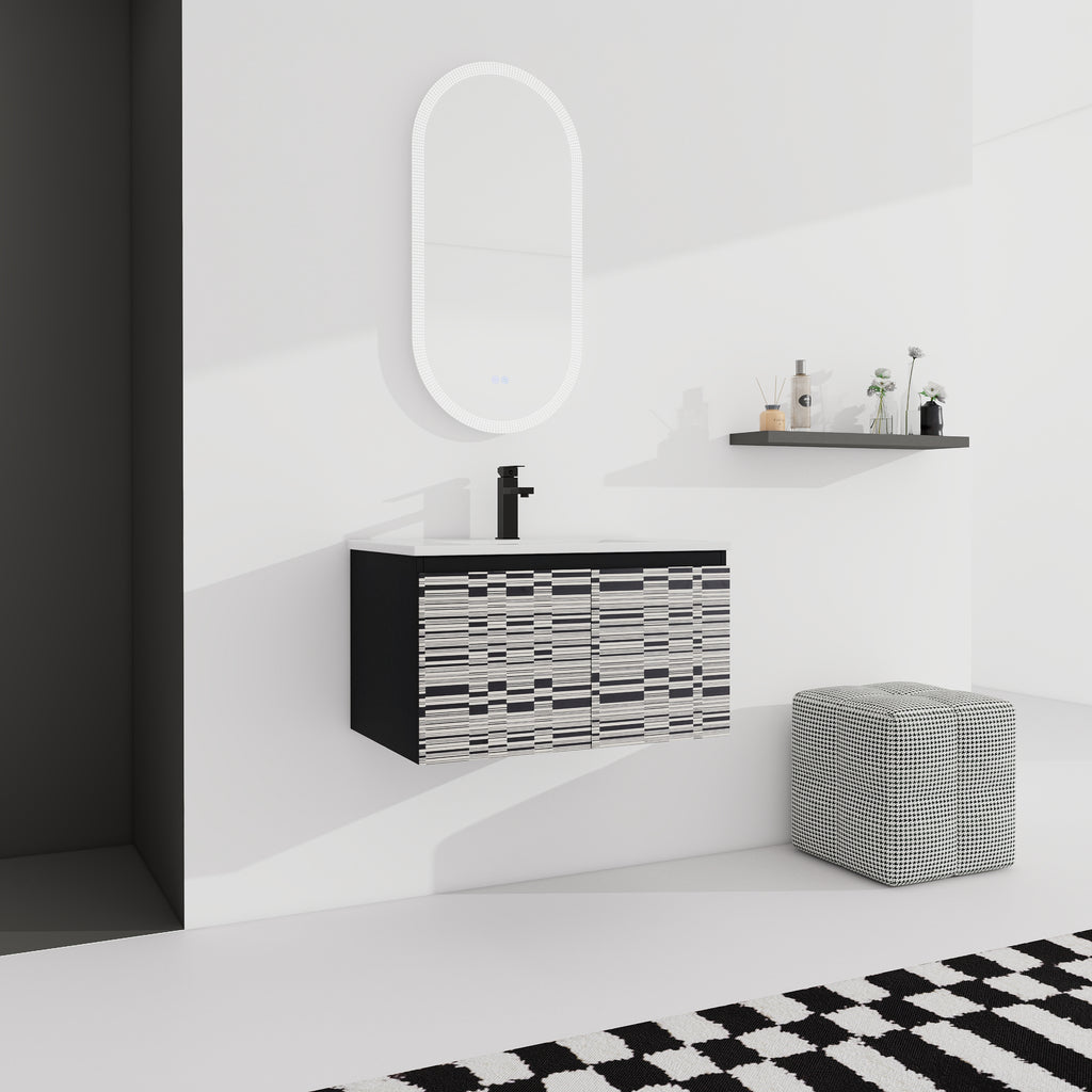The bathroom cabinet features a two door design, which not only facilitates organized storage but also enhances its overall aesthetic appeal. The wall-mounted installation saves space while contributing to a tidy and refreshing bathroom environment. Furthermore, the artistic color design of the door panels adds a unique elegance and style to the bathroom.