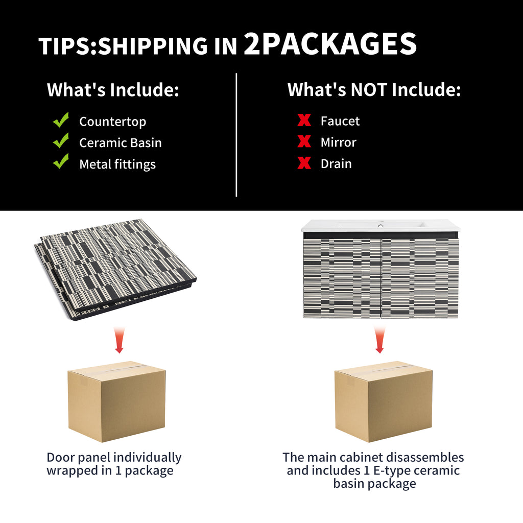 - Tip: The product is divided into two independent packaging for transportation.(Package 1: Bottom cabinet+sink; Package 2: Separate door panel)