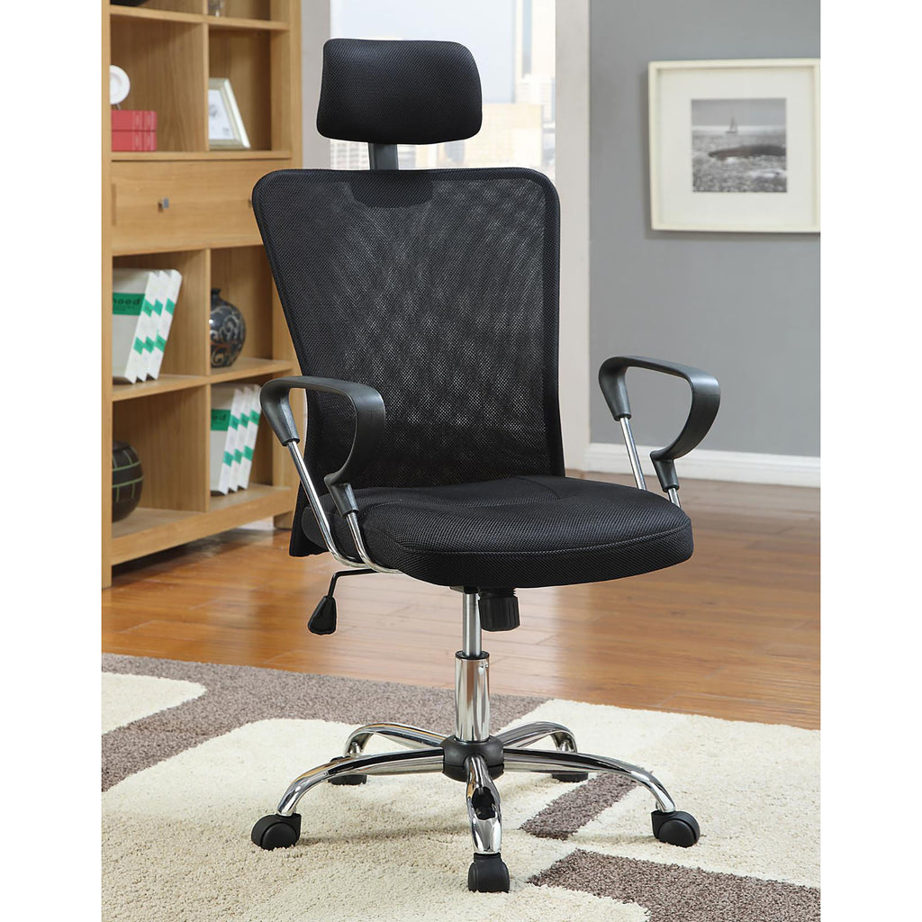 This black office chair offers stylish seating and a sleek silhouette without sacrificing comfort. Its fabric and black mesh finish give it a casually sophisticated look