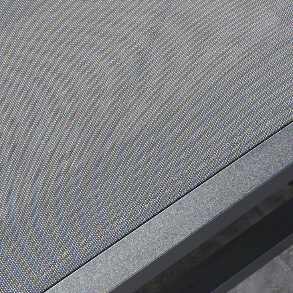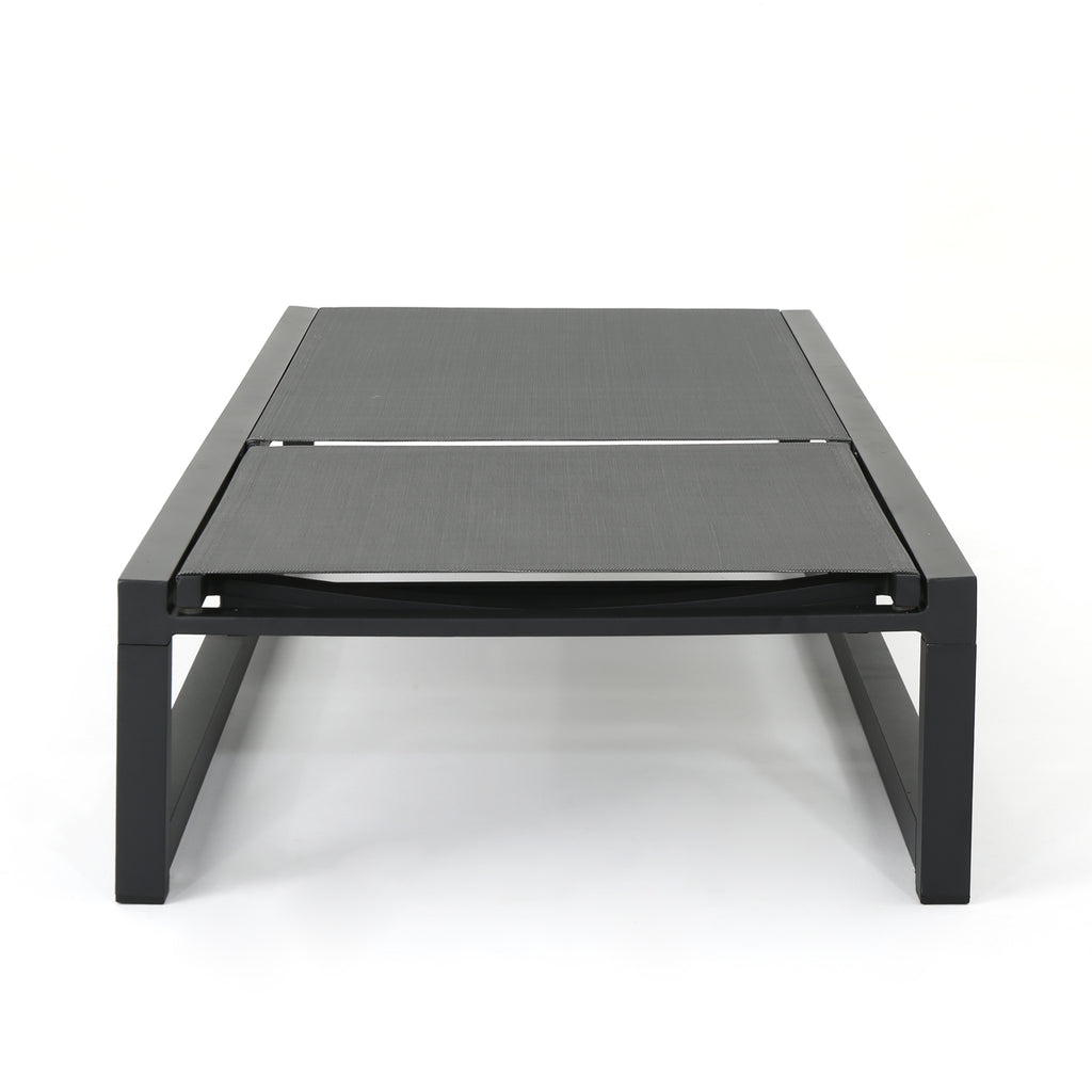 Made of aluminum and outdoor mesh Includes 2 chaise lounges
