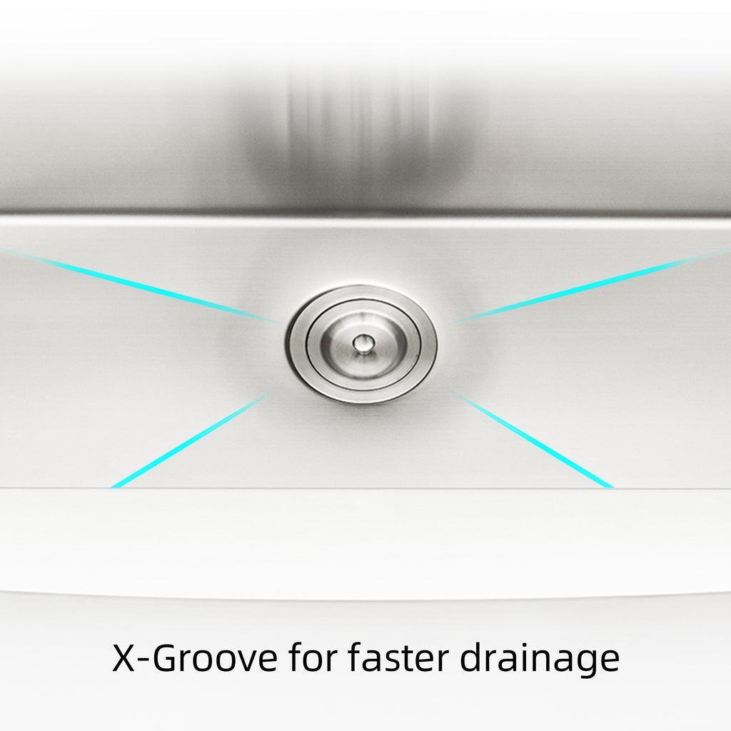 - X groove is designed for easy drainage, with a slight dip at the bottom to prevent water accumulation
