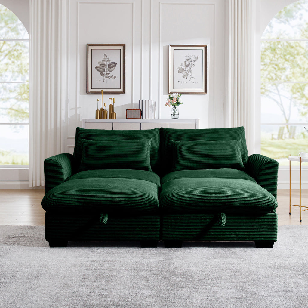 - Superior comfort - extended deep seats allows you to sit cozy on the sofa, soft waist pillow to offer excellent support to your waist, ergonomic seat angle eliminating your fatigue of the day and bringing a full sense of security and comfort. Back and seat cushion are upholstered with comfortable high-density foam cushions for ultimate comfort and support.The back cushions and seat cushions are soft and fluffy, and the stripped corduroy fabric gives it a cloud-like wrapping feel.