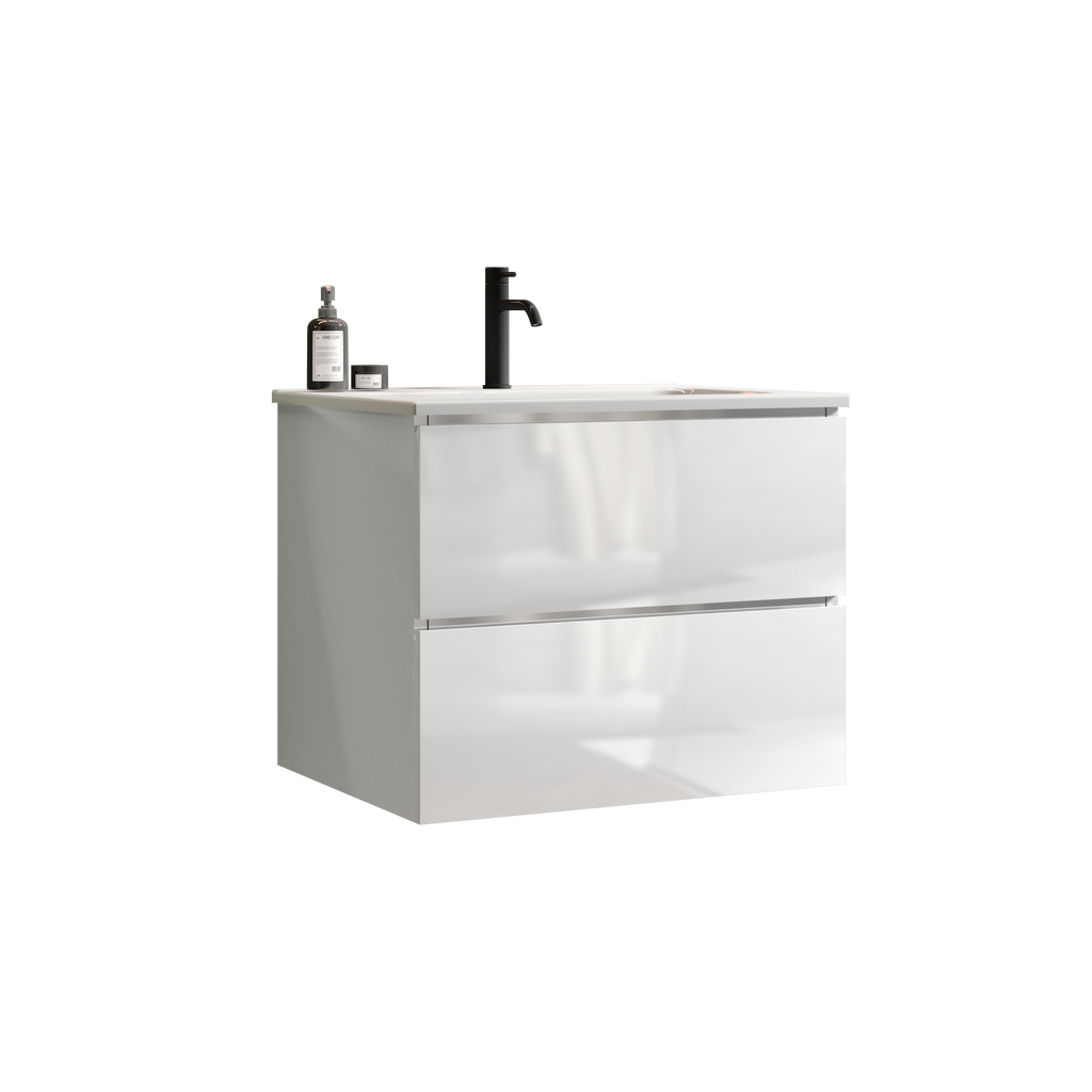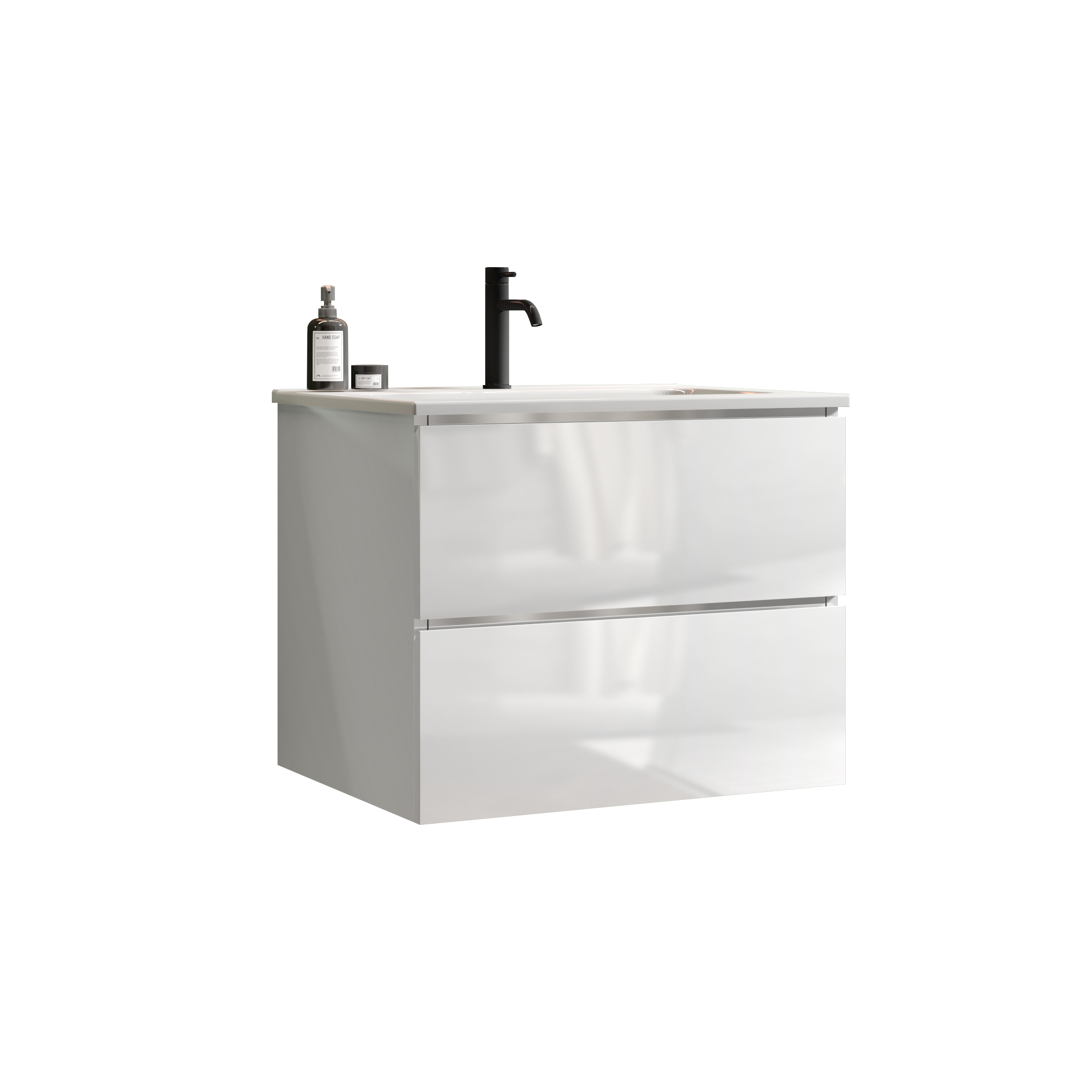 [Sleek handle-free design], [Eco-friendly E1 grade boards], [Durable one-piece basin]