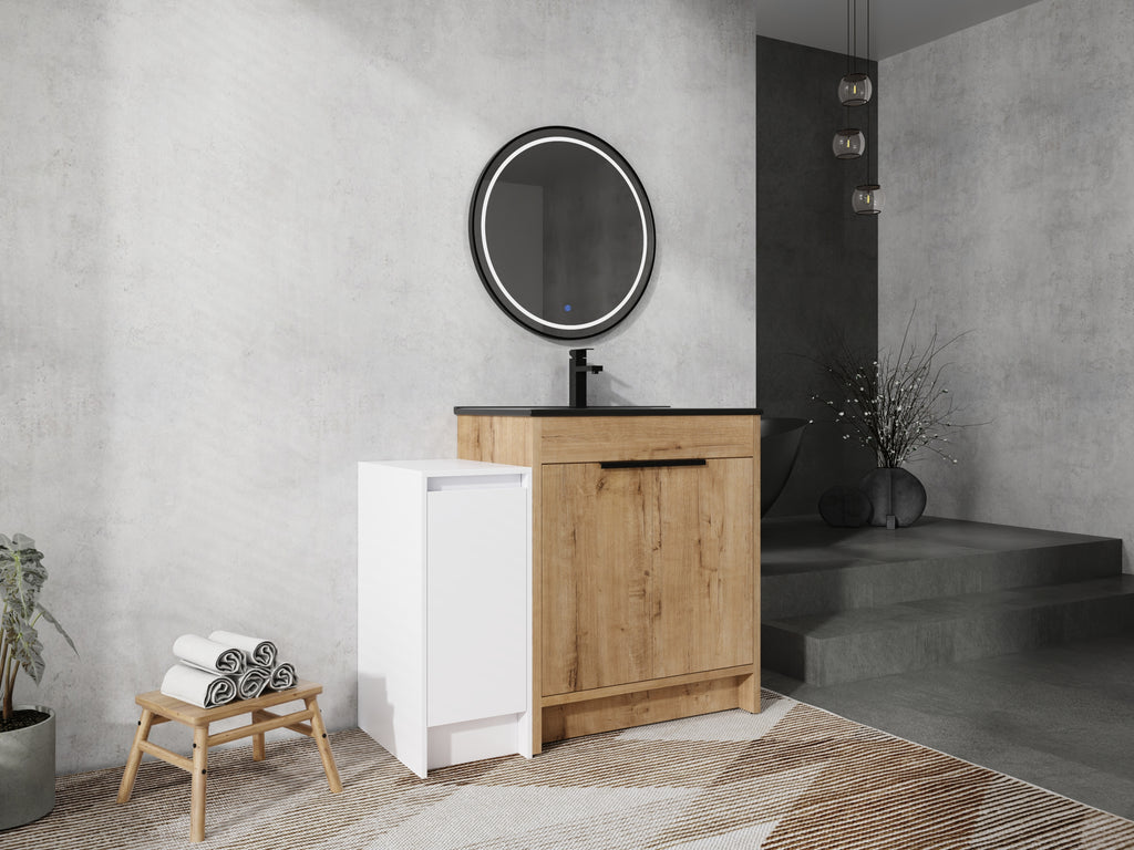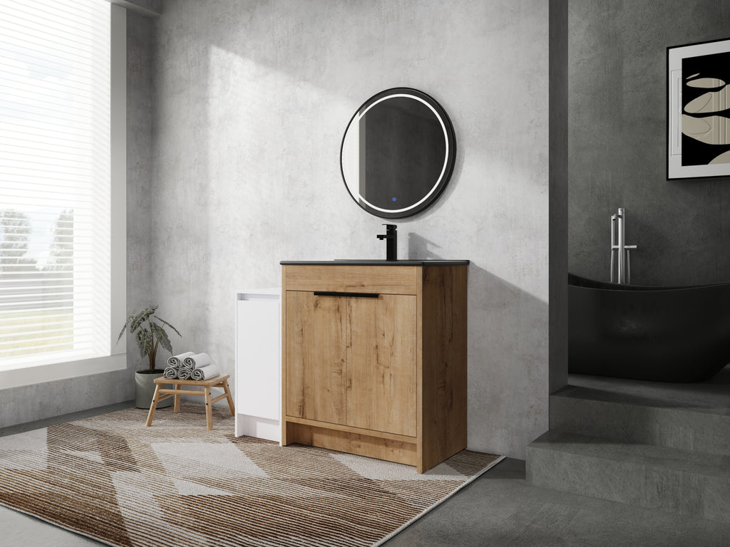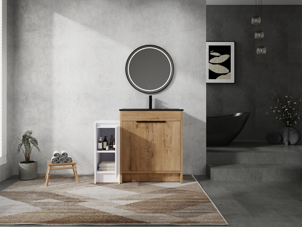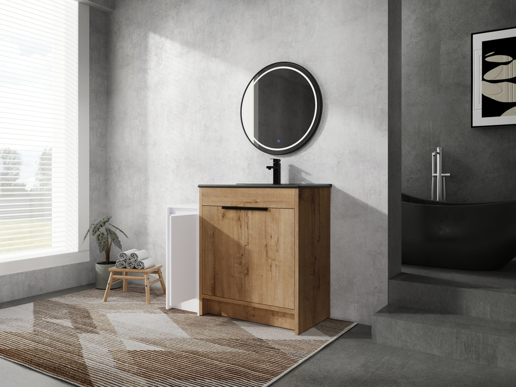 - Bring luxury to your bathroom with our contemporary bathroom vanity. Store all your essentials with ease in the ample bottom storage.