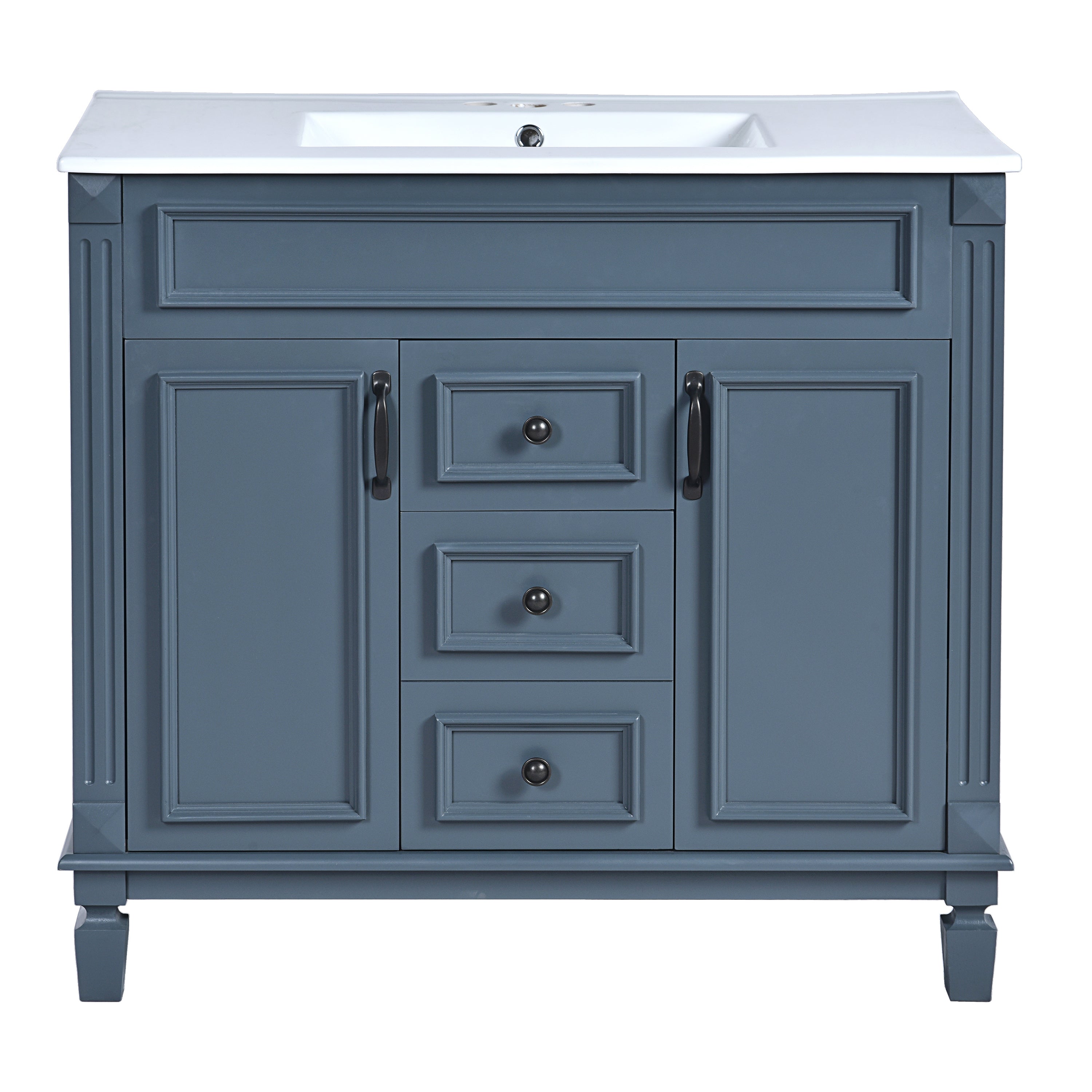 36'' Bathroom Vanity with Top Sink, Modern Bathroom Storage Cabinet with 2 Soft Closing Doors