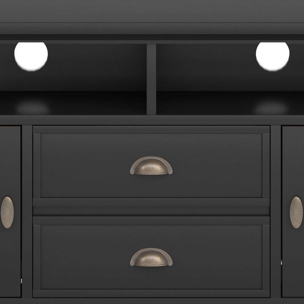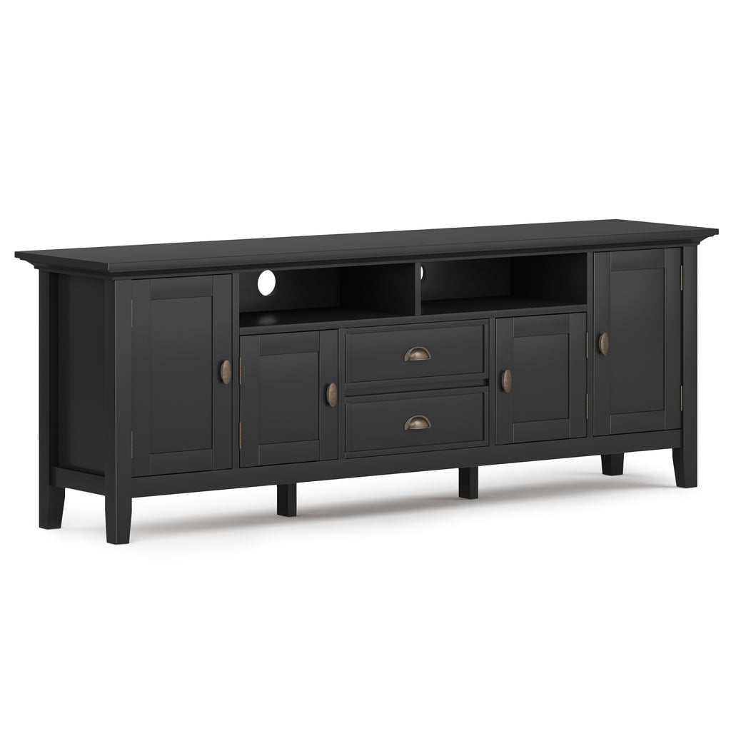 - Extra wide TV Stand is perfect for TVs up to 80 inches includes cord management cut-outs for easy installation of TV and media components