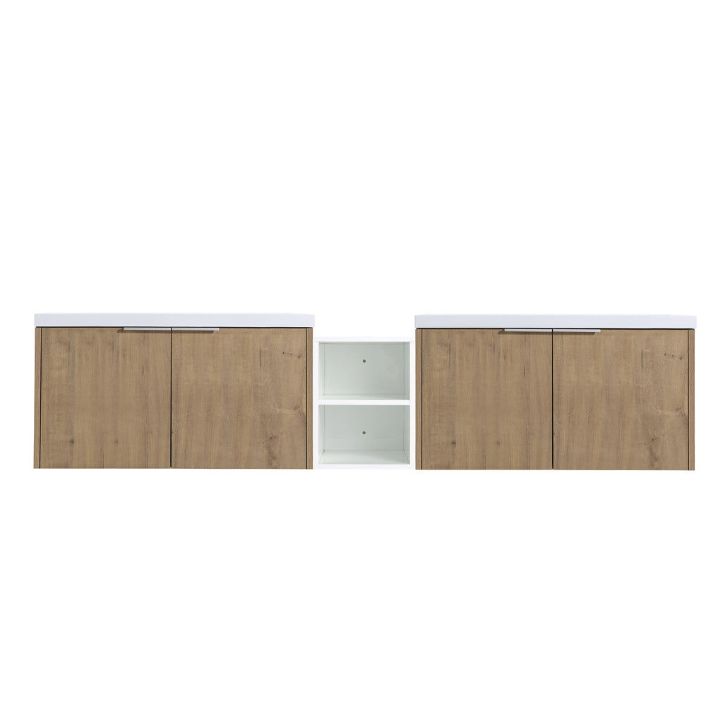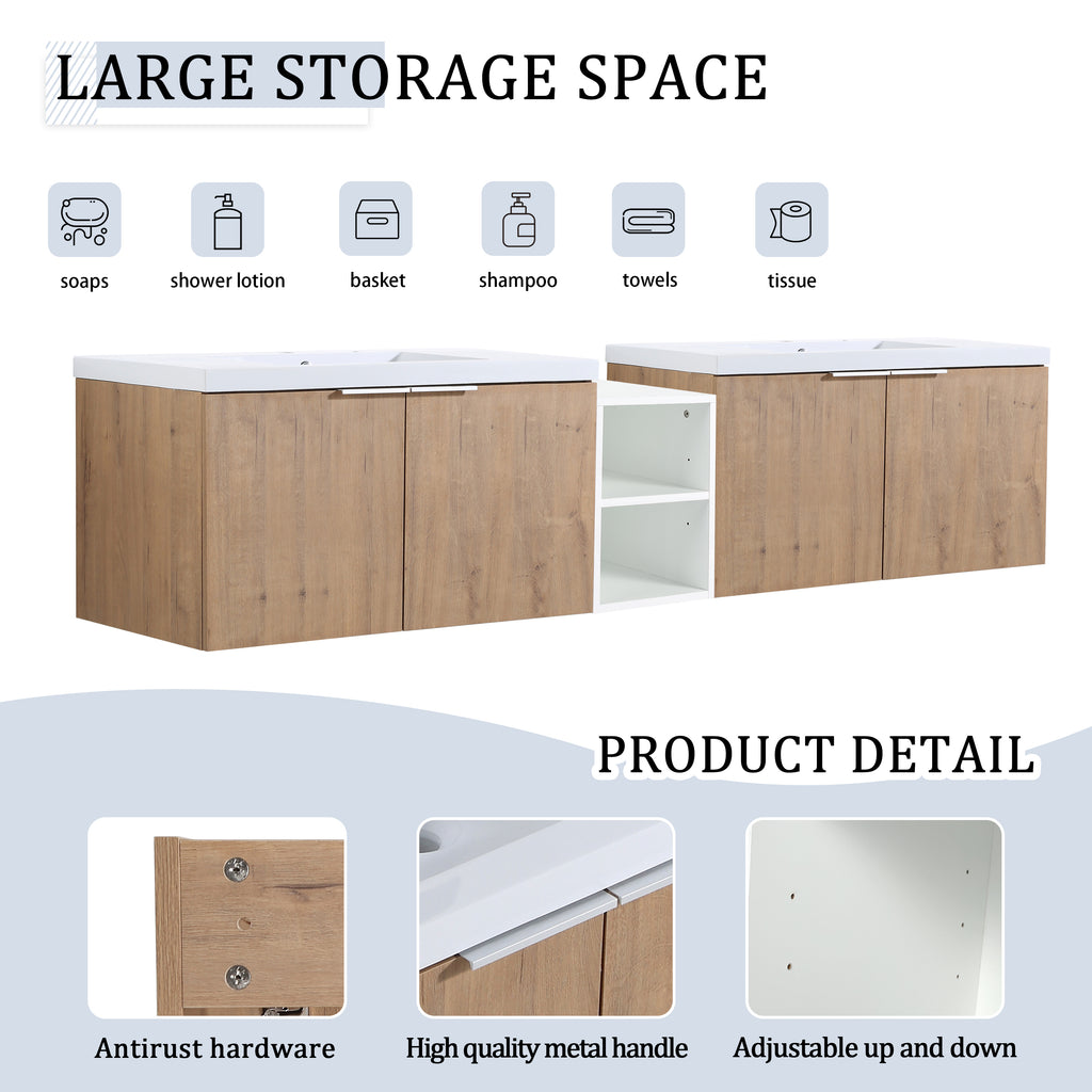 | Package includes | - 2x Vanity Cabinet; - 1x Small Storage Shelves;- 2x Resin Sink;- 4x Metal Handle; Parts Package |