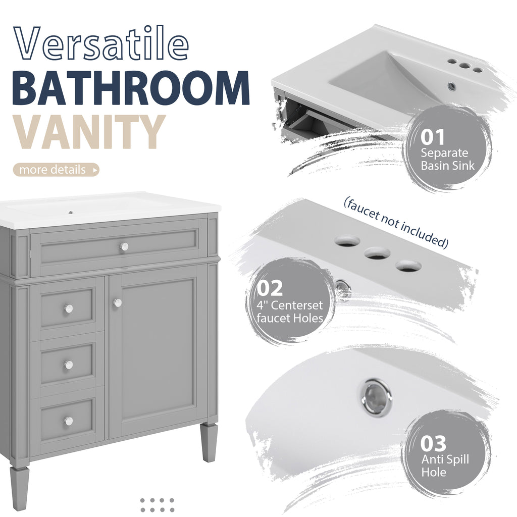 - [ Multi-Purpose Cabinet & Concealed Storage ] Are you looking for stylish and functional storage solutions for your bathroom? Our bathroom vanity provide ample space for all your toiletries and bathroom essentials. The combination of the cabinet body and the drawer perfectly stores all kinds of bathroom products and keeps the necessities away from water stains and dust. Soft-close doors and drawer fronts feature a water-resistant paint finish for durability.