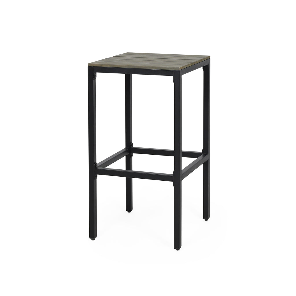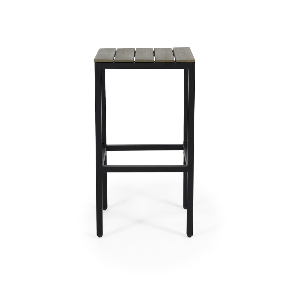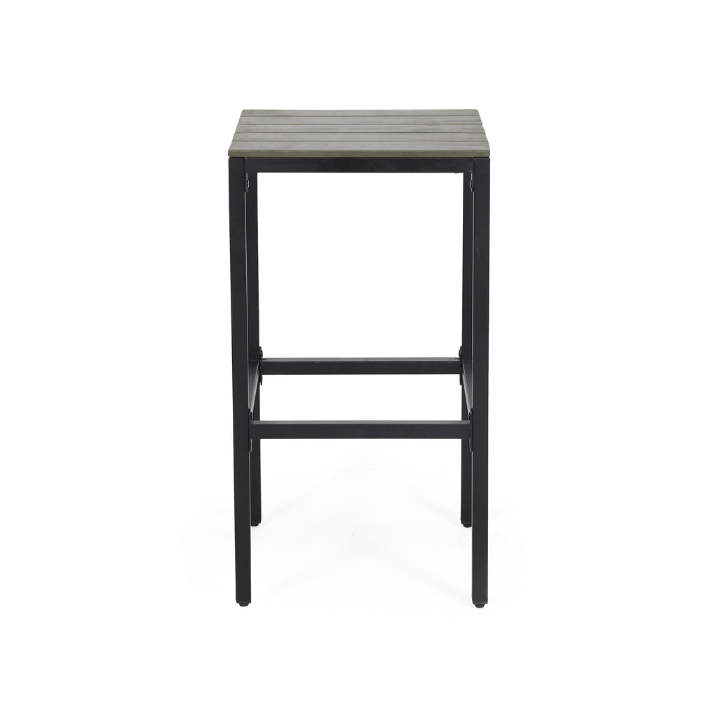 Noe Outdoor Industrial Acacia Wood Bar Stools, Set of 2, Gray Finish, Black