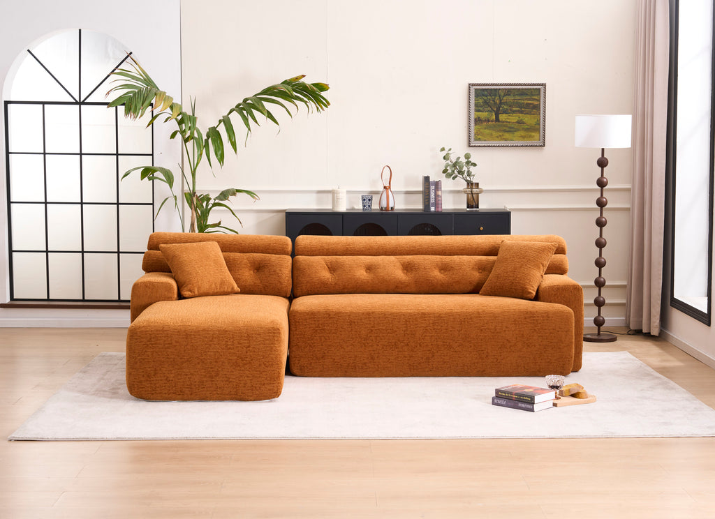 - With it's sleek lines and floor-to-ceiling design, our L modular sofa effortlessly blends with any interior decor theme. Whether placed in a living room, entertainment area, or even a spacious office, this sofa becomes the focal point, exuding sophistication and style