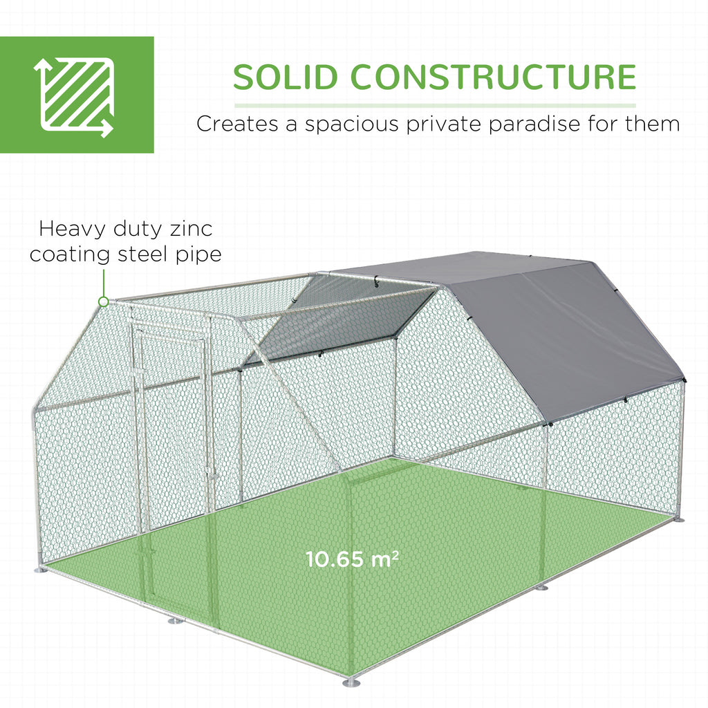 - Safety Design: Lockable door with a latch makes this large chicken coop extra safety. And the chain link walling features steel wires and a sturdy galvanized steel frame that's resistant to wear and rust, allows you to avoid worrying about small animals being intruded by predators at night. The metal wire is treated with a dipping process that ensures protection against injury.