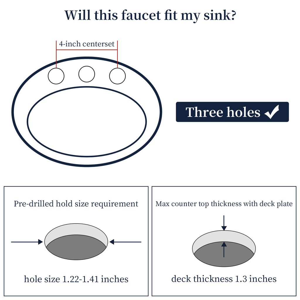 - ?【 WATER EFFICIENT 】- The ABS aerator of 3-hole mount 5 inch centerset bathroom sink faucet imported strengthens the foaming effect of the dense, the water flow is dense and soft without splashing,improve water efficient. Detachable aerator, you can clear hard water blockage at any time. Suitable for rent house, new condo, single-apartment, motor home, travel trailer and family use.