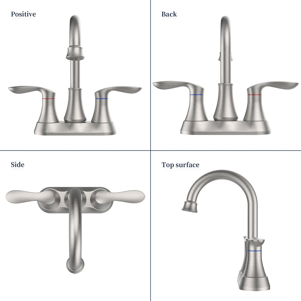 - ?【 TWO-HANDLE METAL LEVER 】- 2 handle lever bathroom faucet design for precise control in both volume and water temperature. The handle torque can reach up to 18MM, which greatly extends the handle life.(The current industry standard is 9MM). The high-quality ceramic & copper cartridge has passed 500,002 cycles of water tightness test to ensure that the brushed nickel bathroom faucet is stable.