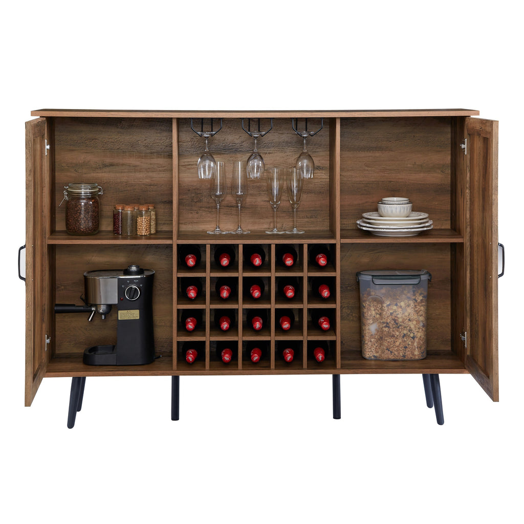 - PLENTY OF STORAGE SPACE:This freestanding dining side wine cooler comes with a spacious and sturdy tabletop, a 20-grid wine rack, wine glass holders, and two side cabinets with doors, each with adjustable tiers, providing you with plenty of open and hidden space for storing and displaying your wine, appliances, or personal items!