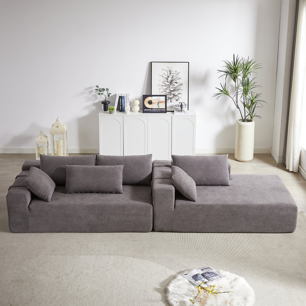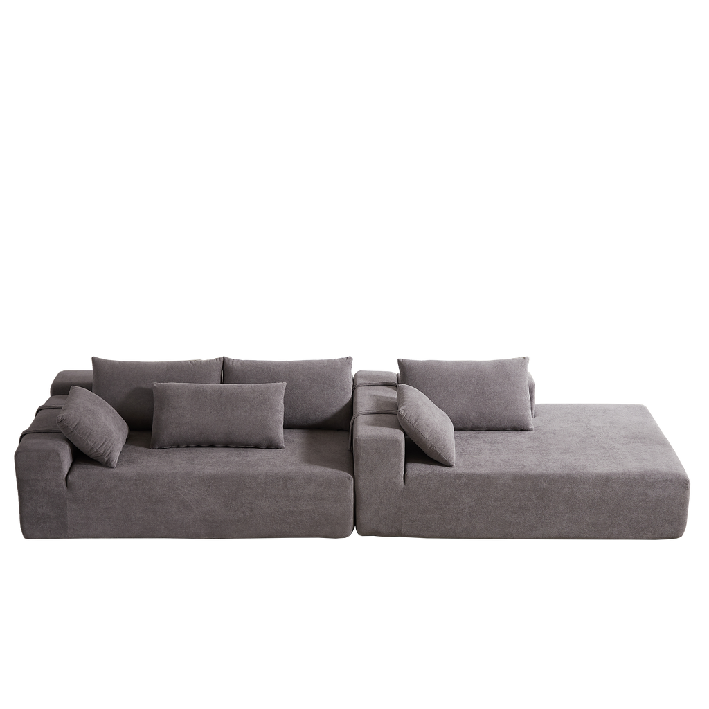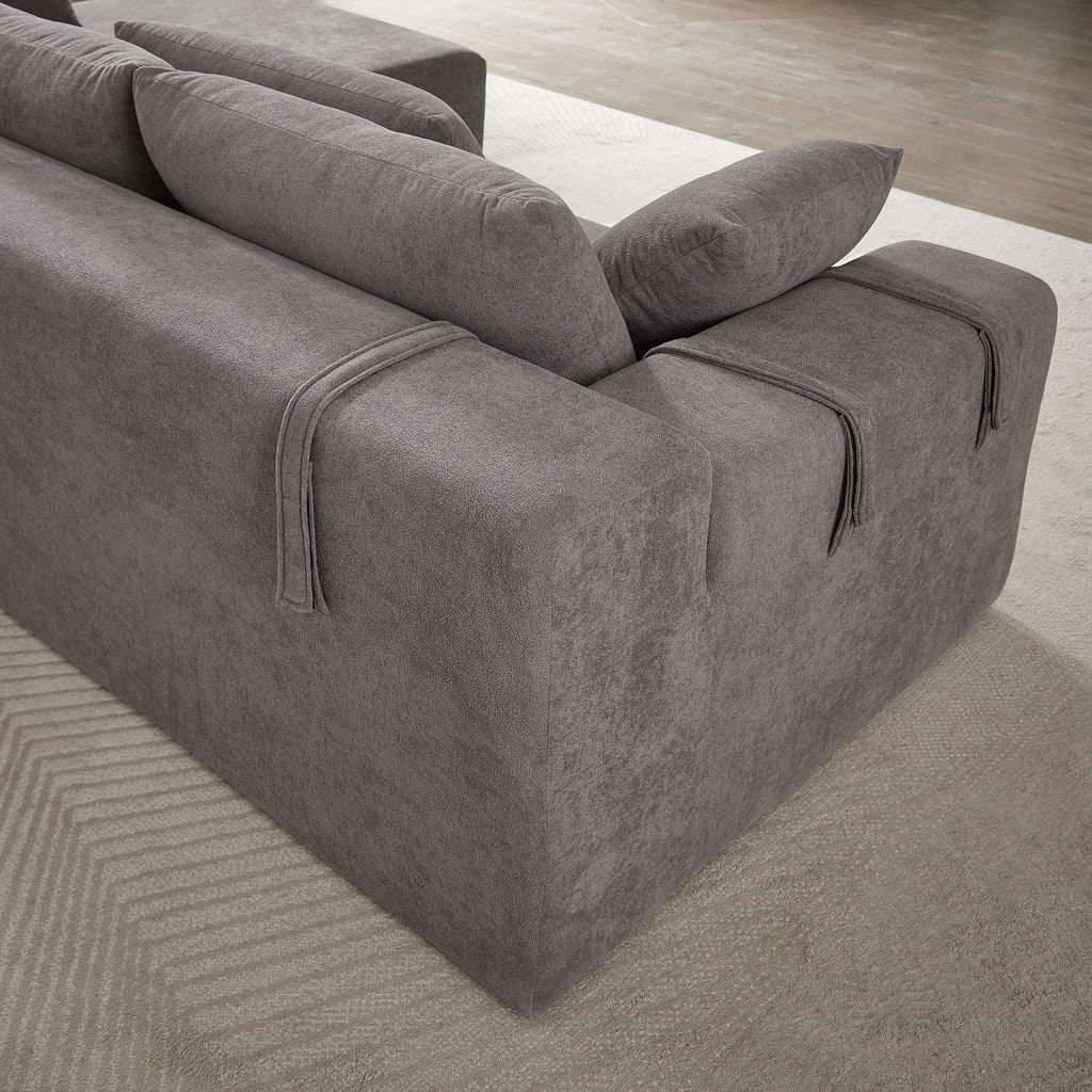 - [Modern Sectional Sofa Couch]This Chenille upholstery sectional sofa features a simple style, focusing more on clean lines to bring a timeless and chic to your home, This Upholstered sofa sectional features square arms and includes six pillows[dimensions:17.7*29.5(3pcs),17.7*17.7(2pcs),13.7*27.5(1pcs)] make sure your living room the center of attention