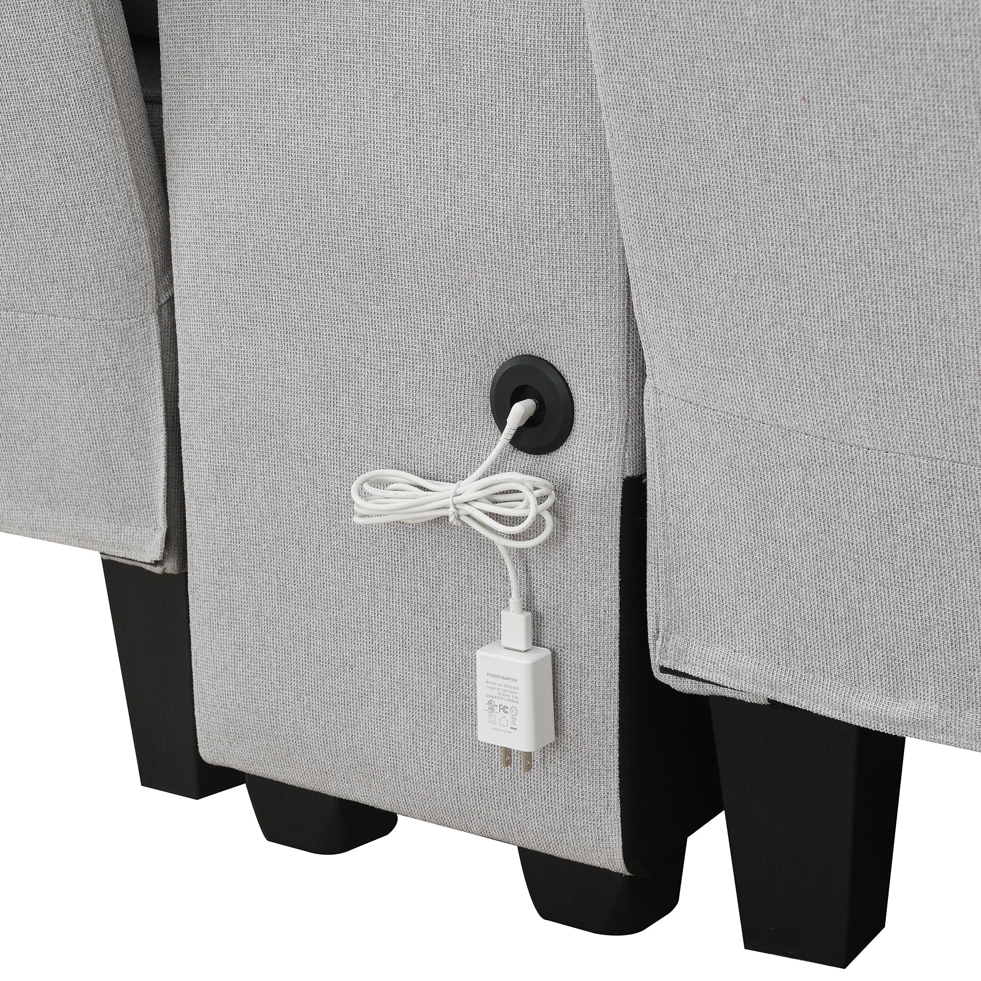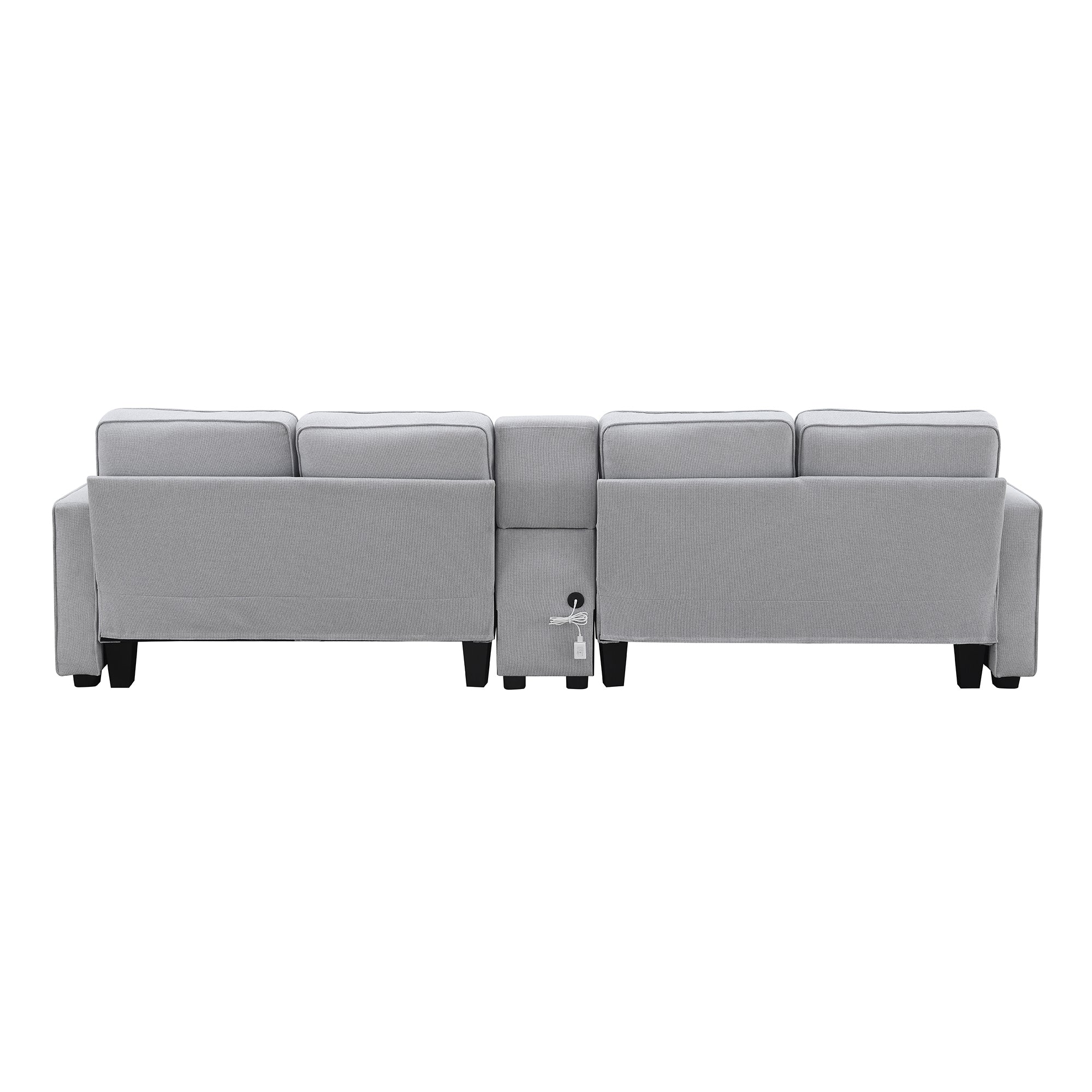 This is a modern and stylish multifunctional sofa,the linen fabric is breathable and wear-resistant.Large seat depth can let you in the most relaxed way possible.For convenience, it has a lot of storage space.In the middle of this sofa,there is a console for storage.on the side,it also has 3 storage pockets of different sizes.The most surprising point is that it can be wired or wirelessly charged.It is very friendly to people who use electronic devices a lot.