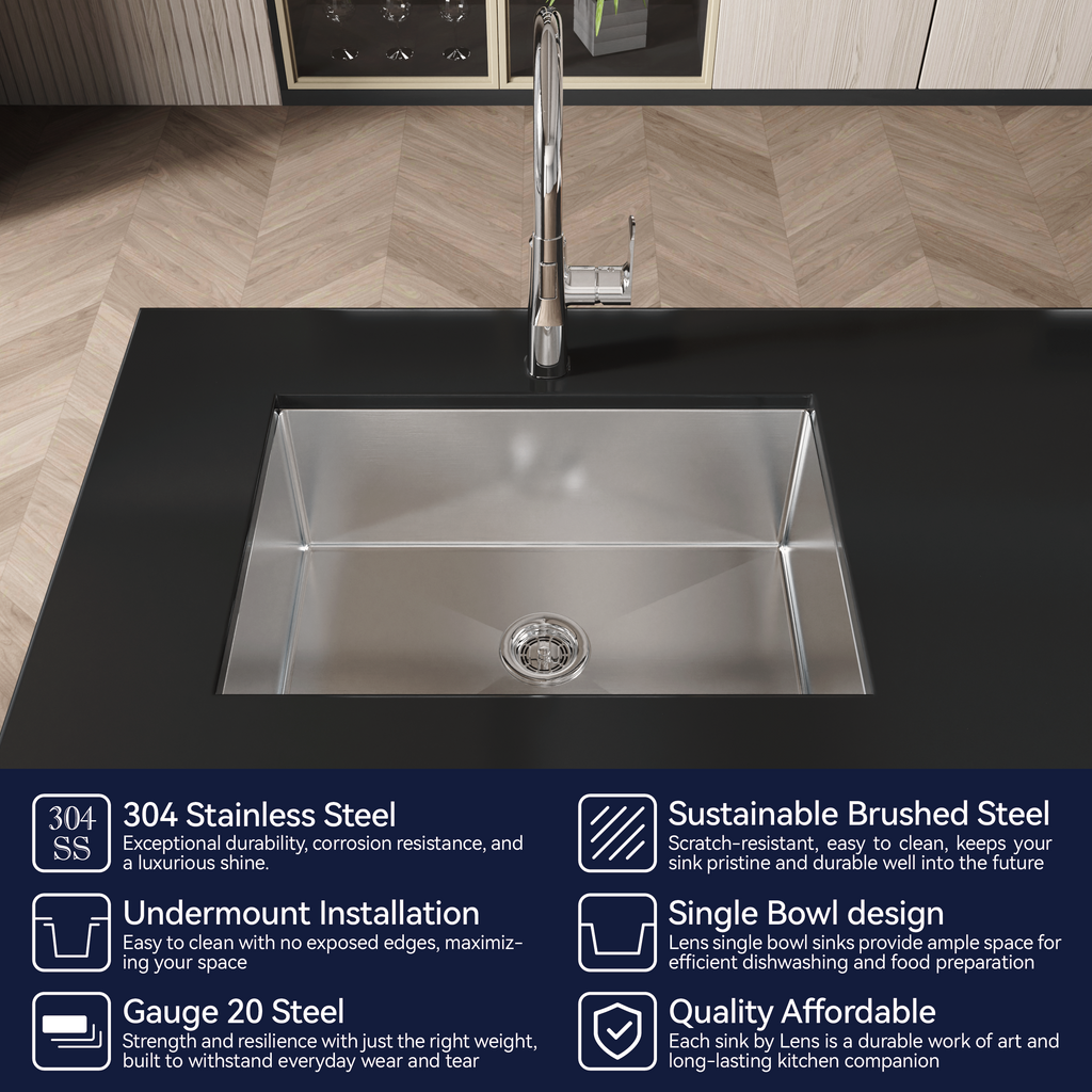 - 3 mm THICKER MATERIAL FOR EXTRA DURABILITY: The single bowl kitchen sink is made of SUS304 premium stainless steel that is easy to clean, and durable with resistance to stains, scratches, and corrosion. The thickness of the sink edge is 3 mm ensuring that the edges will not warp. The stainless steel sink is ideal for most kitchen appliances.