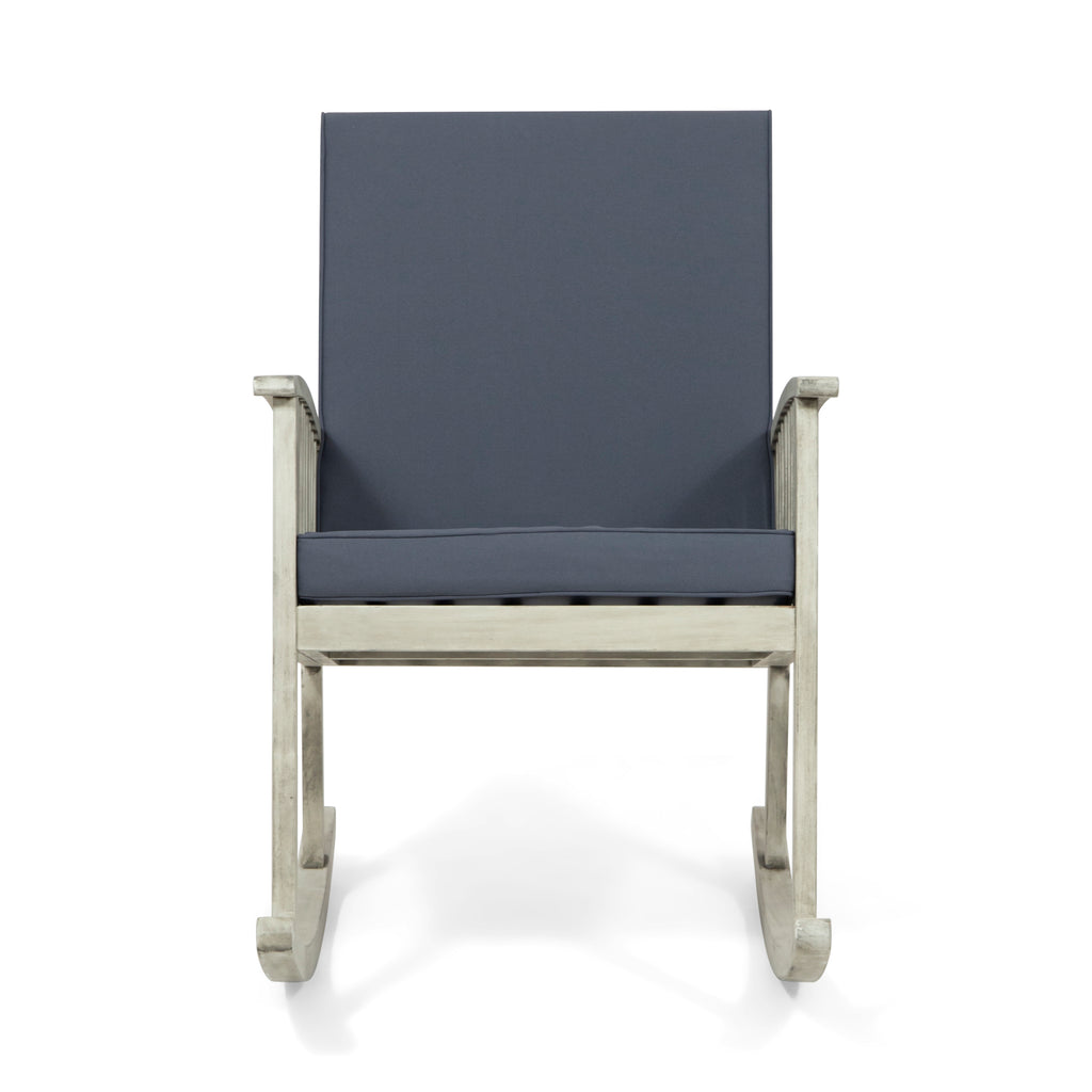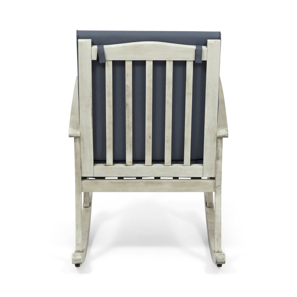 - Soak in the summer sun with a cozy rocking chair that brings ultimate relaxation to a corner of your porch or backyard space. Featuring a gorgeous acacia wood frame with back and seat cushions, this chair brings both incredible comfort and a homey vibe to your outdoor space. This set is finished with a gentle rocking design that creates a soothing motion for you to enjoy, making this chair set your new favorite place to sit back and enjoy the outdoors.